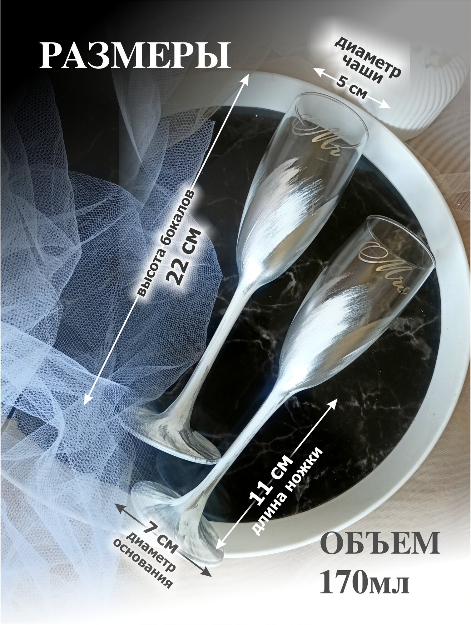 Свадебные бокалы для шампанского