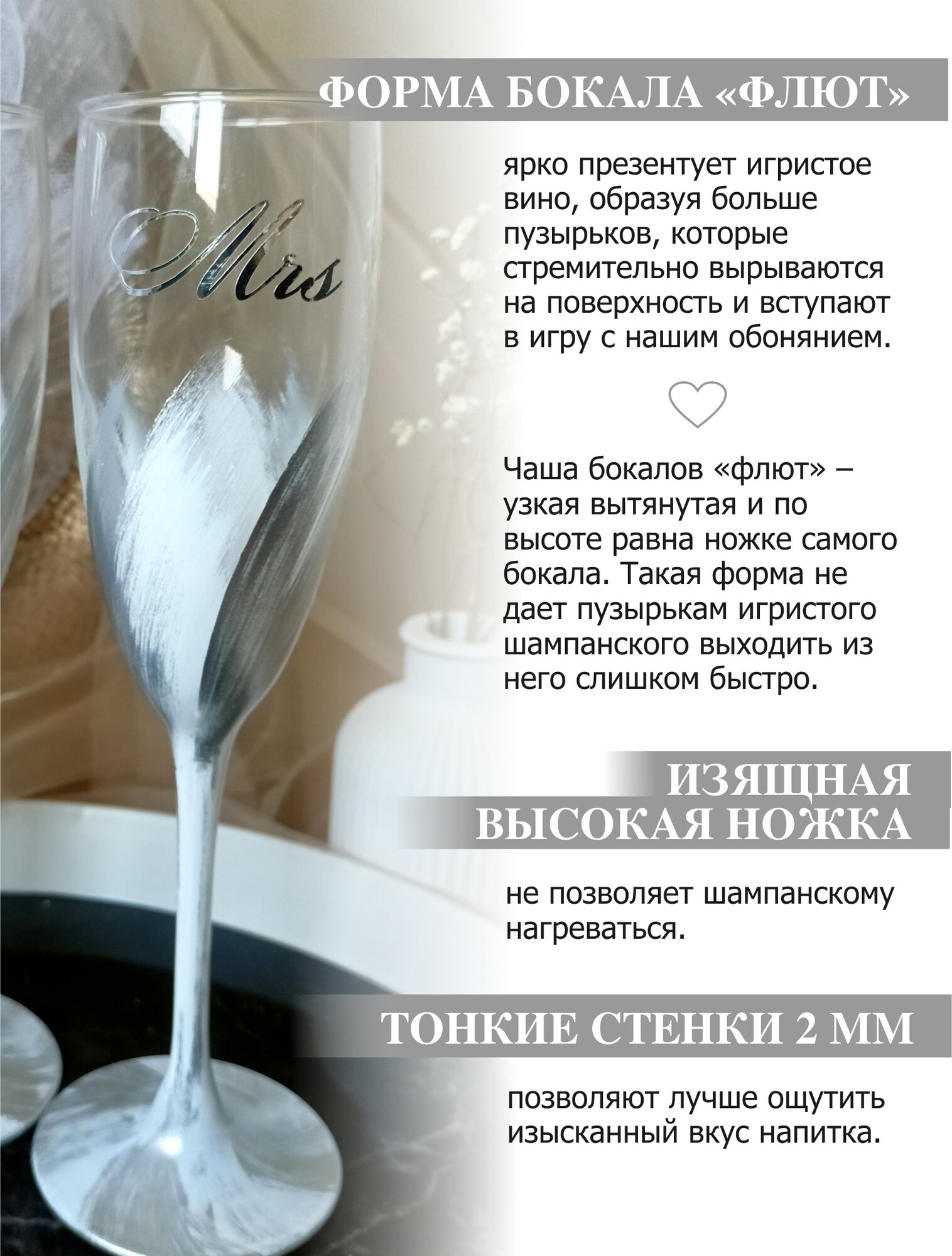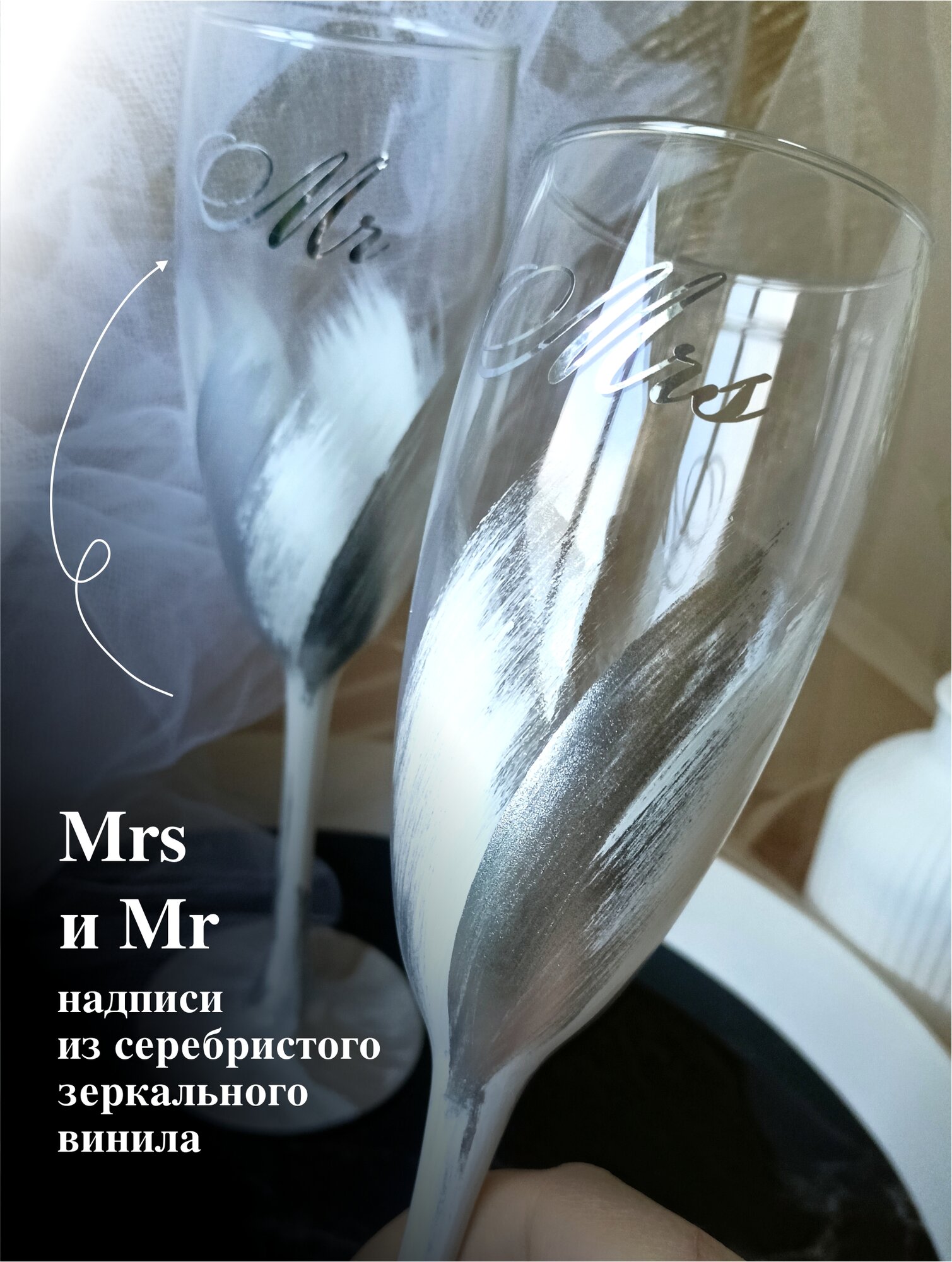 Свадебные бокалы для шампанского серебро интересное: