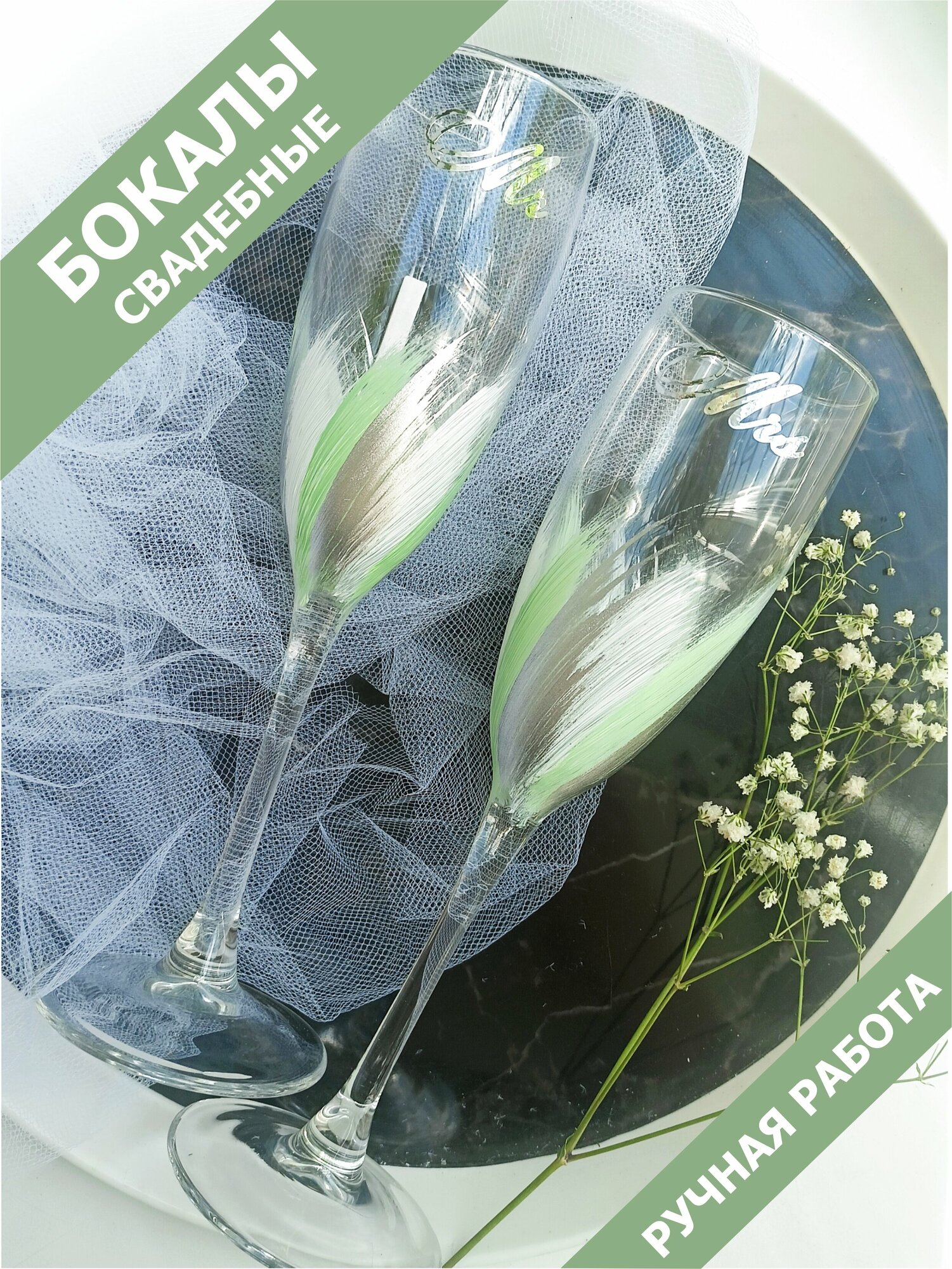 Свадебные бокалы для шампанского зеленые интересное: