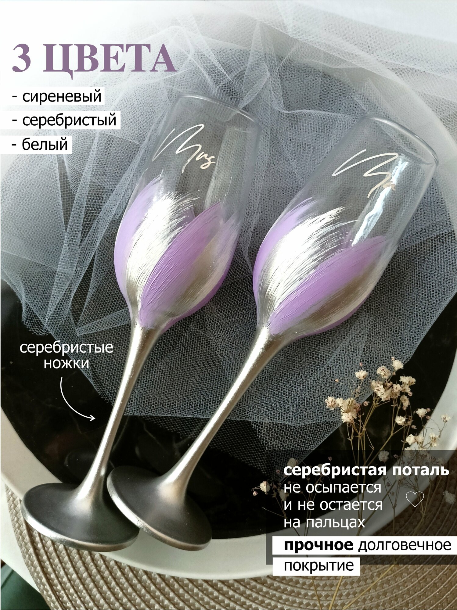 Свадебные бокалы для шампанского сиреневые интересное: