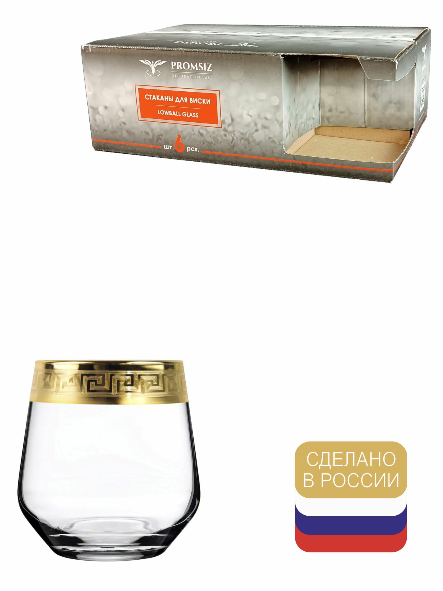 Купить Подарочный набор стаканов для виски с алмазной гравировкой PROMSIZ версаль голд 390 мл, 6 шт.