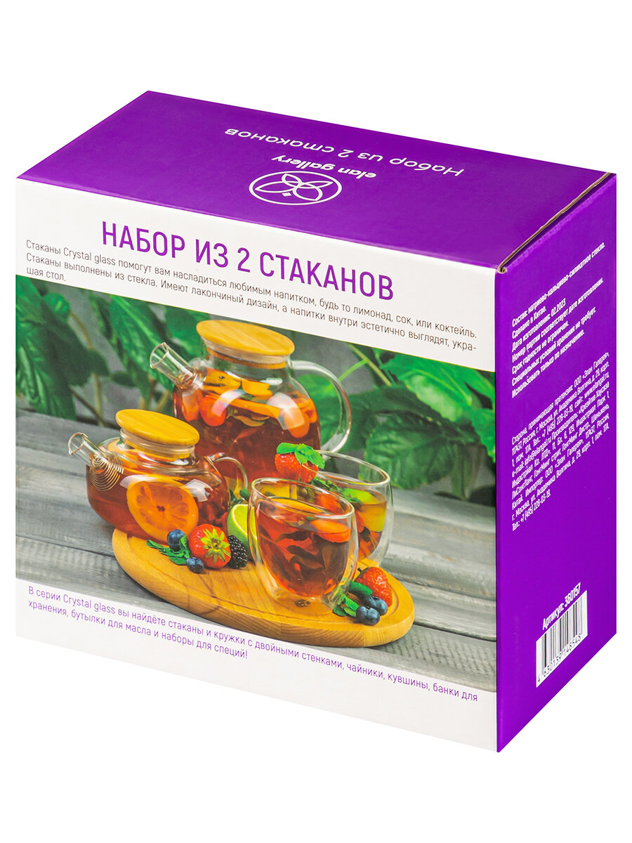 Набор 2 стаканов 500 мл Elan Gallery Crystal glass, 8,5*8,5*16 см, стекло интересное: