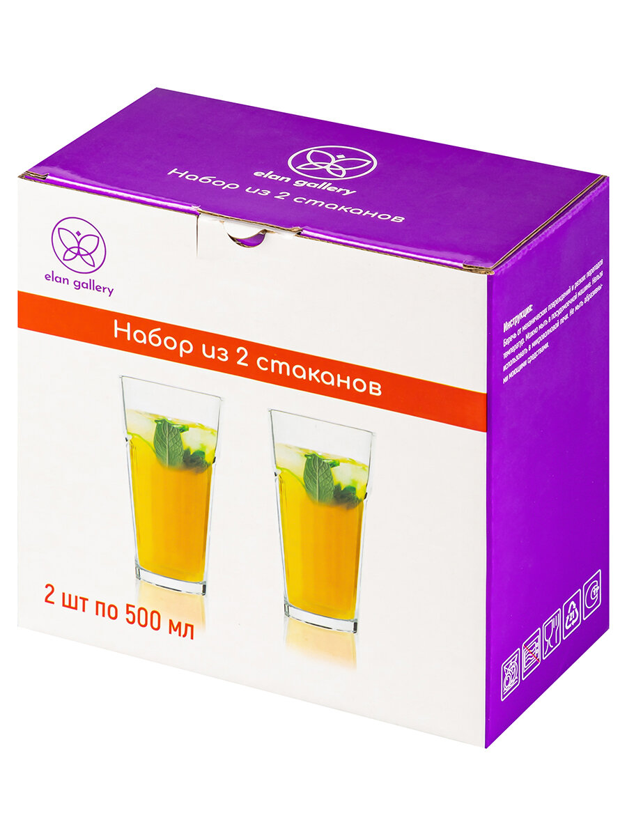 Купить Набор 2 стаканов 500 мл Elan Gallery Crystal glass, 8,5*8,5*16 см, стекло