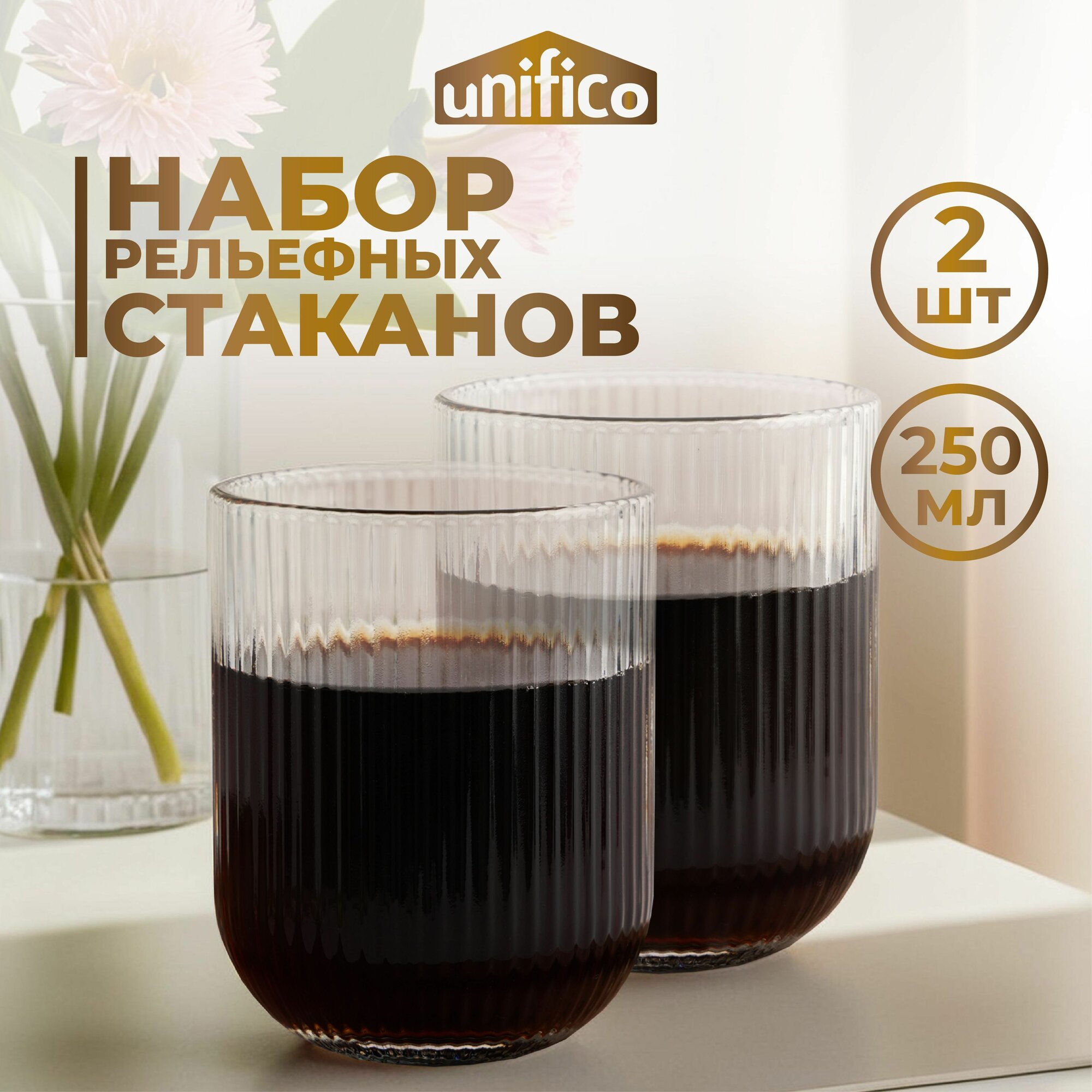 Набор стаканов 2 шт. 250 мл из рельефного стекла Unifico Roxy интересное: