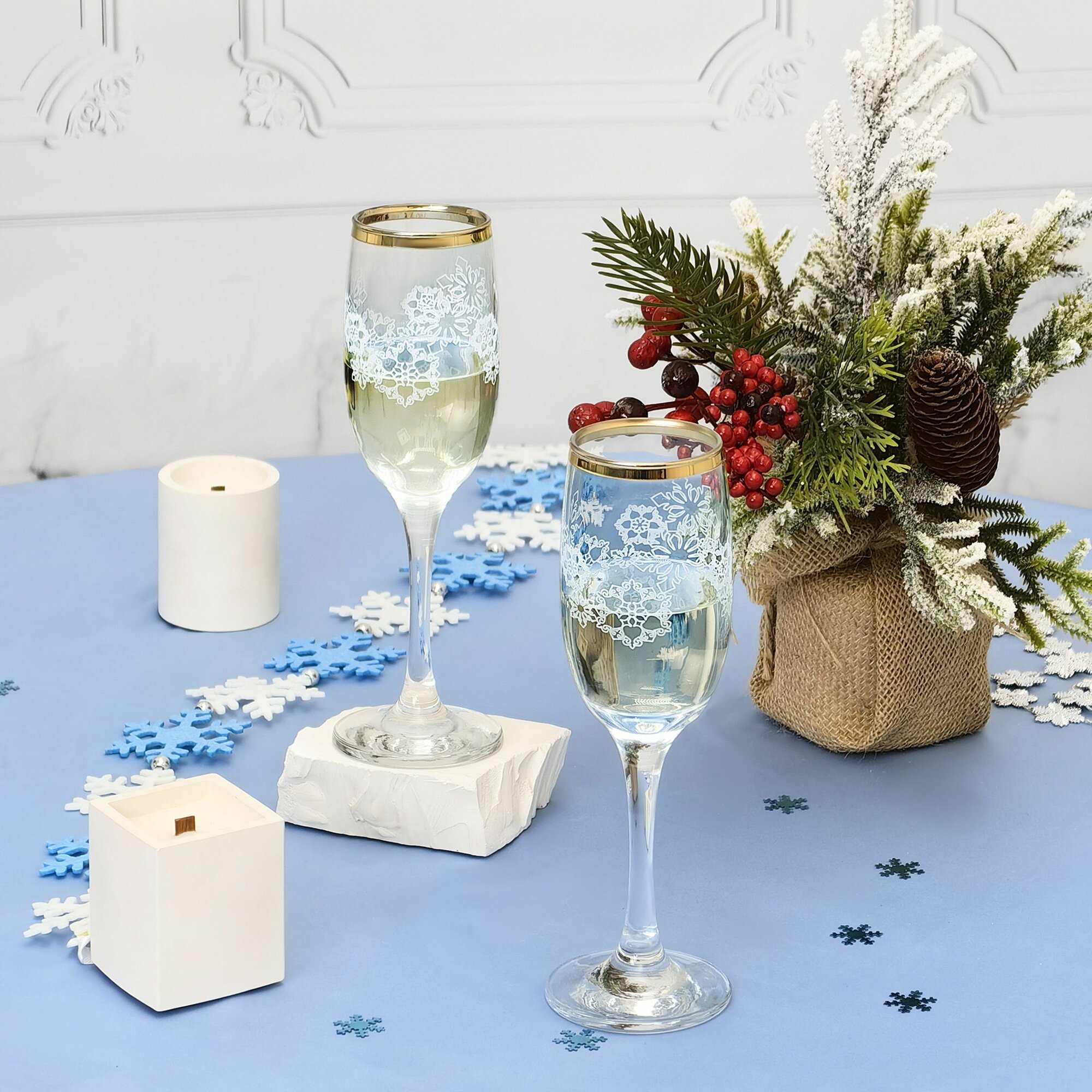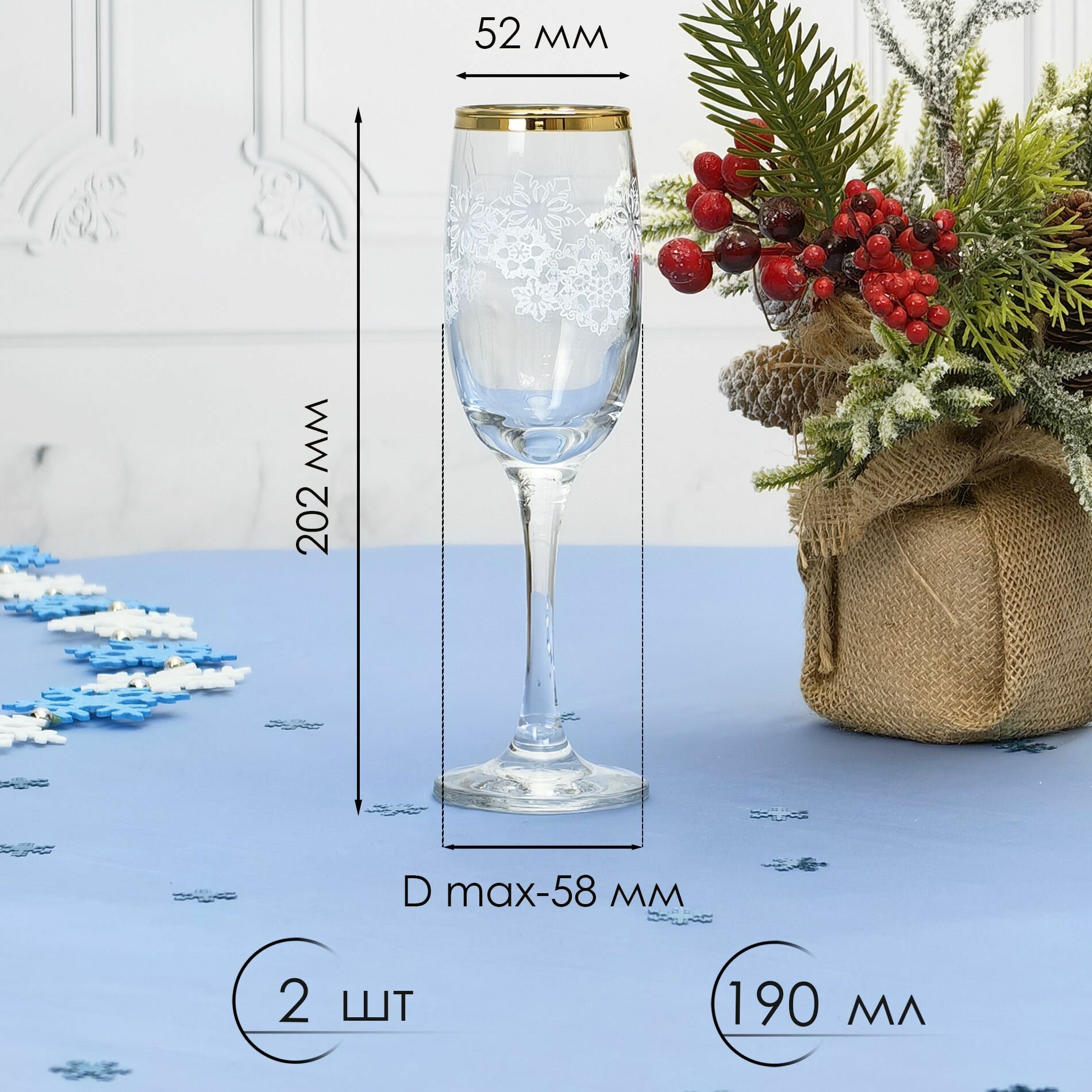 Новогодний подарочный набор бокалов / фужеров для шампанского с алмазной гравировкой PROMSIZ вьюга / 180 мл, 2 шт. интересное: