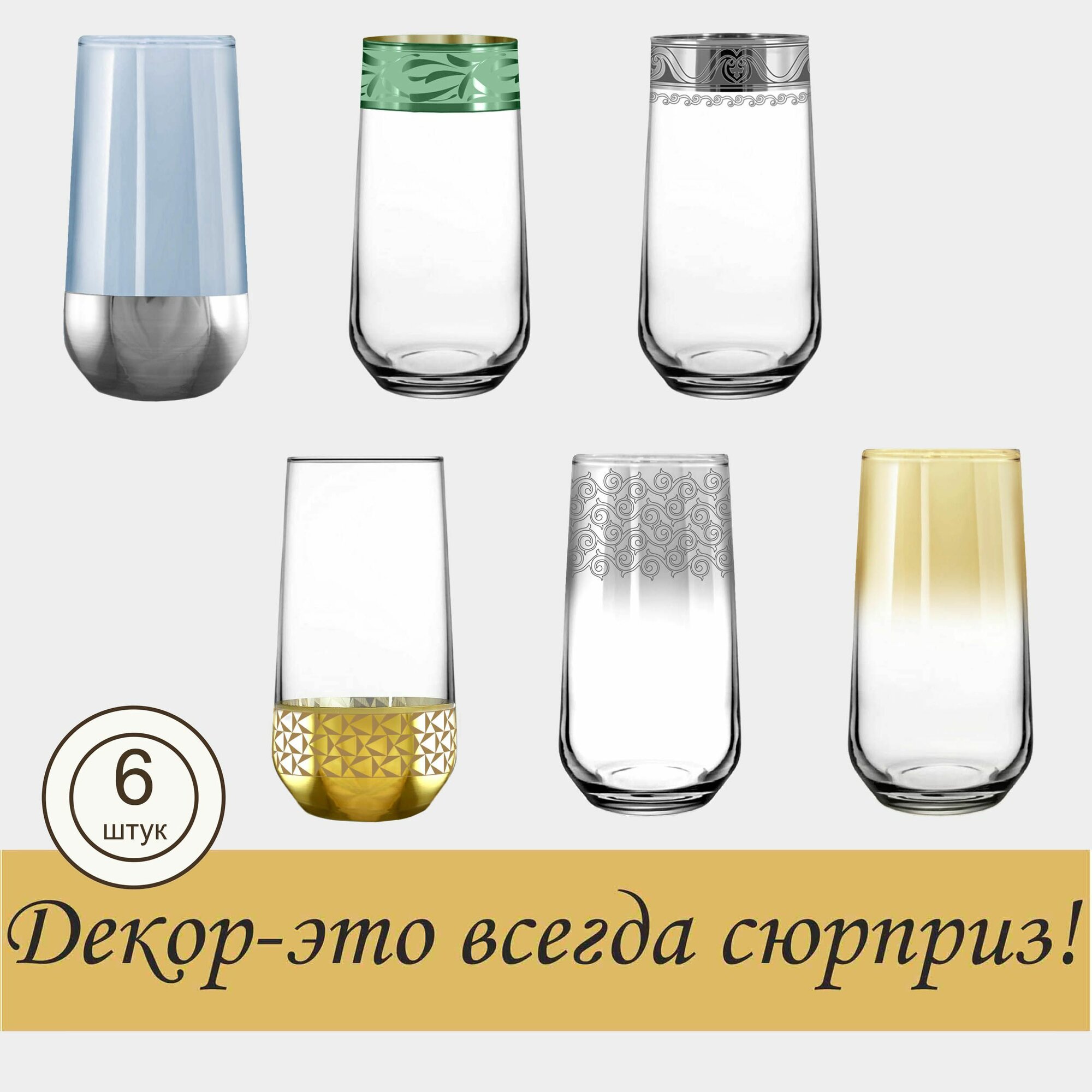 Купить Набор стаканов с алмазной гравировкой для воды / сока/ коктейлей PROMSIZ сюрприз, 470 мл, 6 шт.