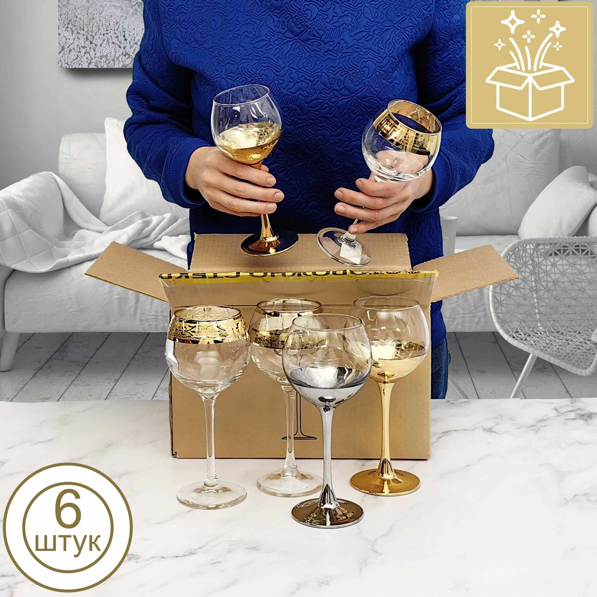 Набор бокалов для вина с алмазной гравировкой PROMSIZ сюрприз, 240 мл, 6 шт.