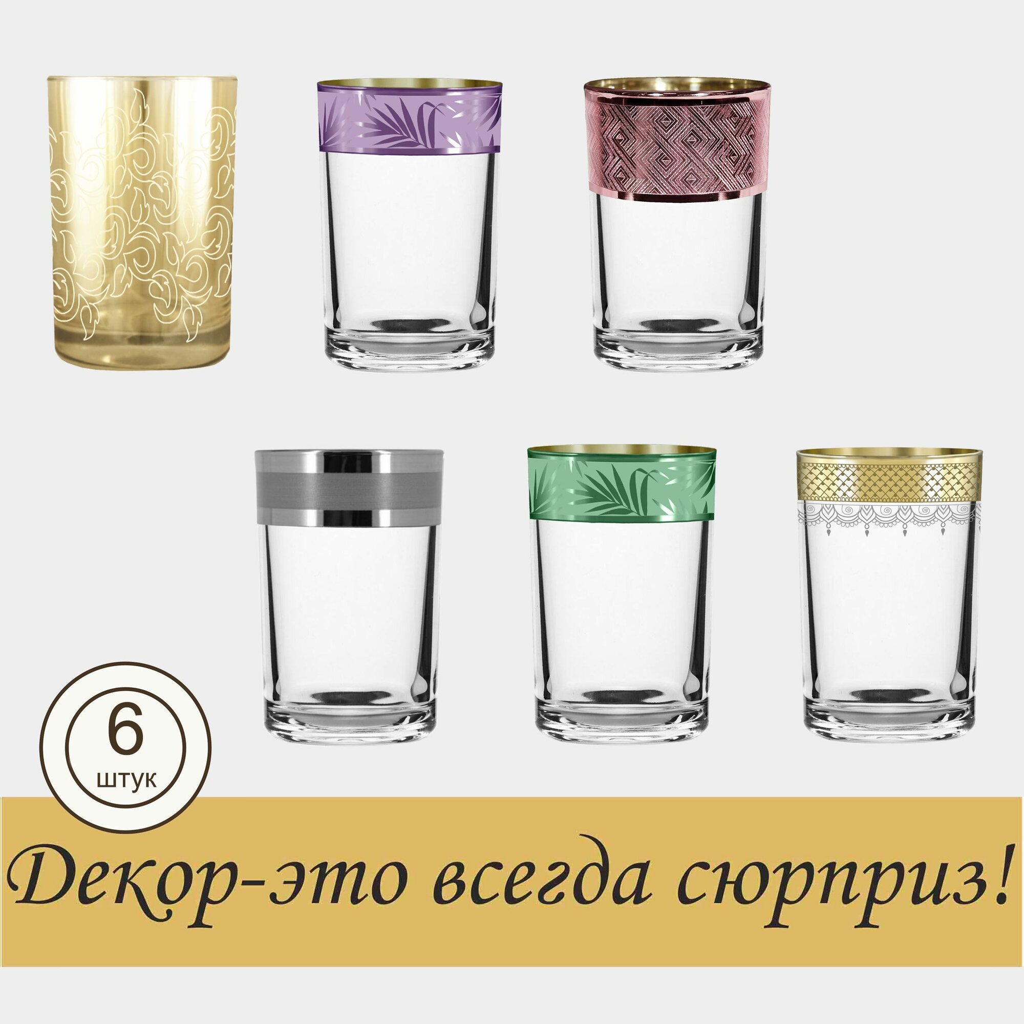 Купить Набор стаканов с алмазной гравировкой для воды / сока PROMSIZ сюрприз, 250 мл, 6 шт.