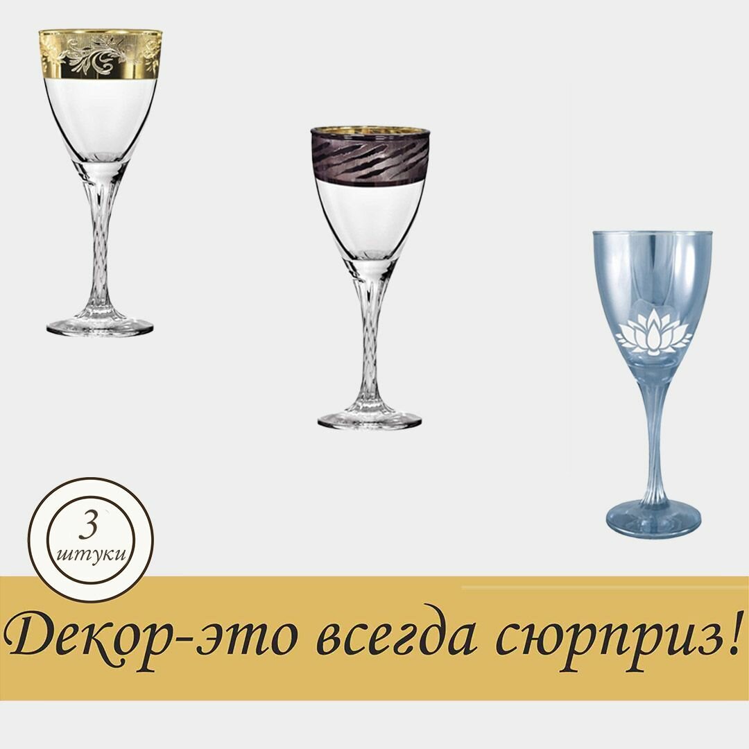 Купить Набор бокалов для вина с алмазной гравировкой PROMSIZ сюрприз, 200 мл, 3 шт.