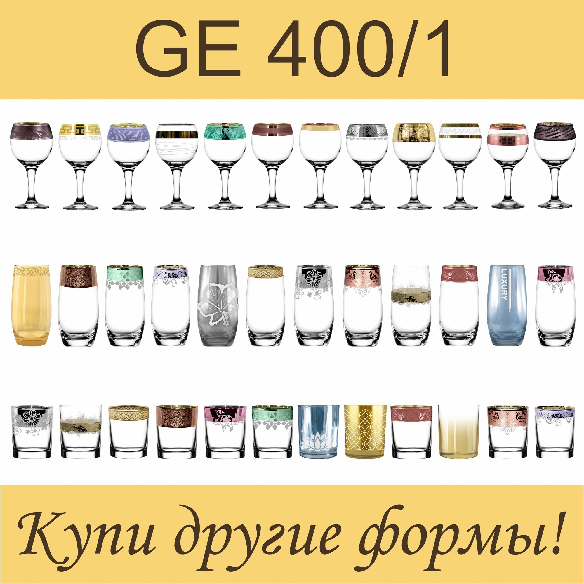 Набор стаканов с алмазной гравировкой для воды / сока/ коктейлей PROMSIZ сюрприз, 470 мл, 6 шт.
