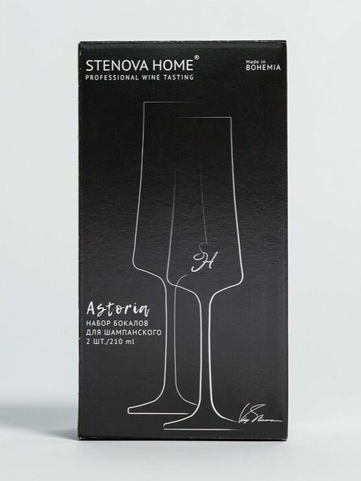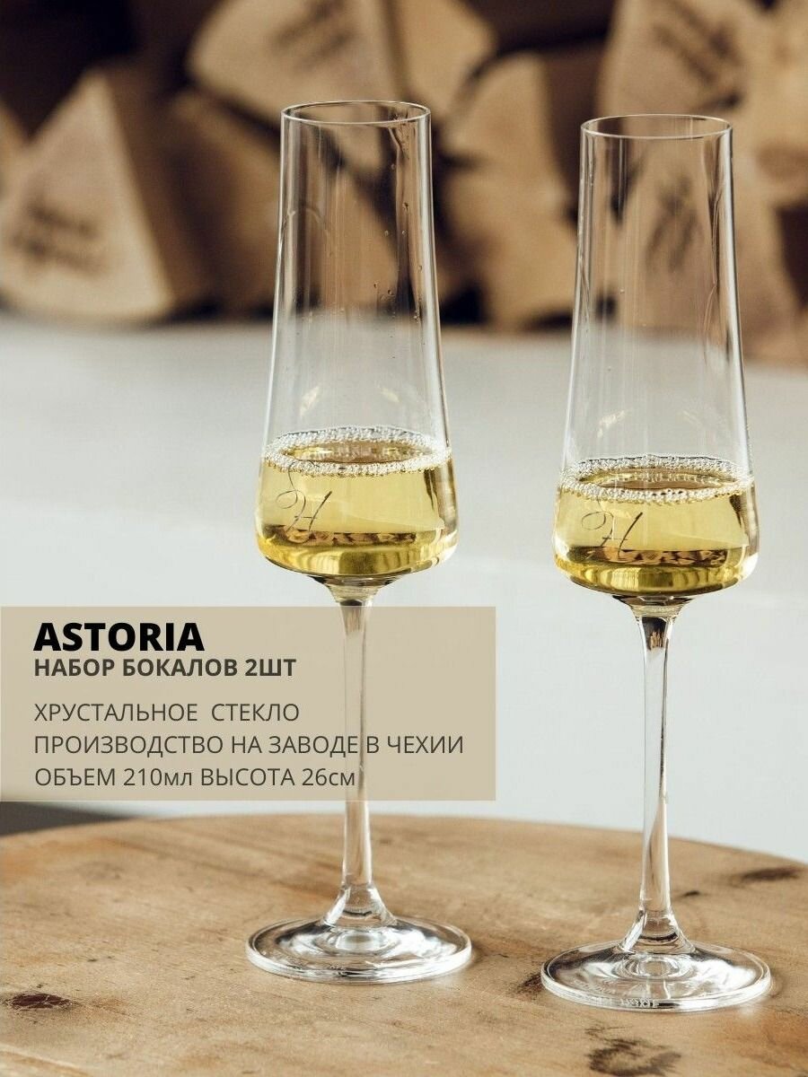 Бокалы (2шт) хрустальное стекло для шампанского Astoria 210мл. STENOVA HOME интересное: