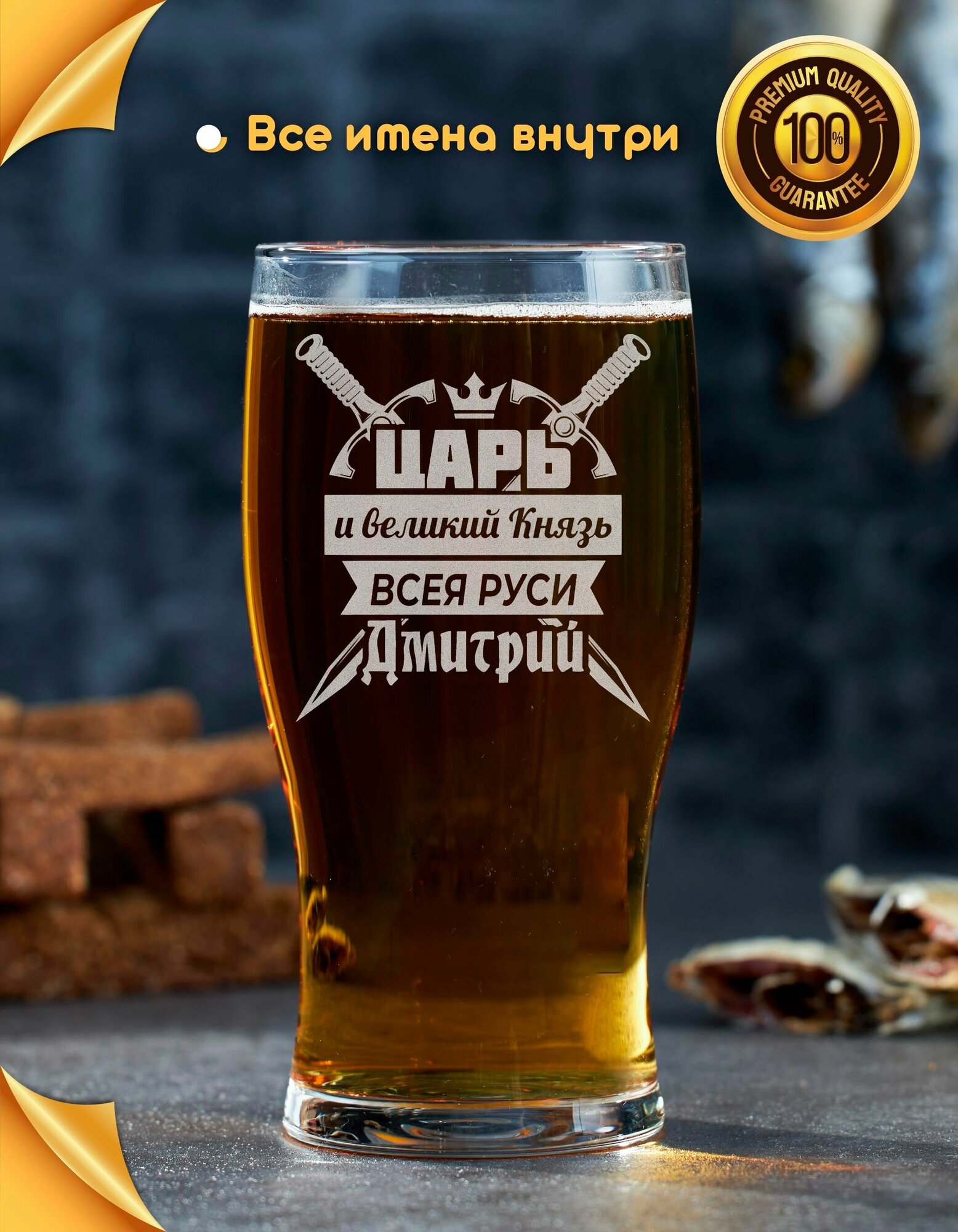 Бокал для пива подарочный именной с гравировкой Царь и Великий Князь всея Руси Дмитрий интересное: