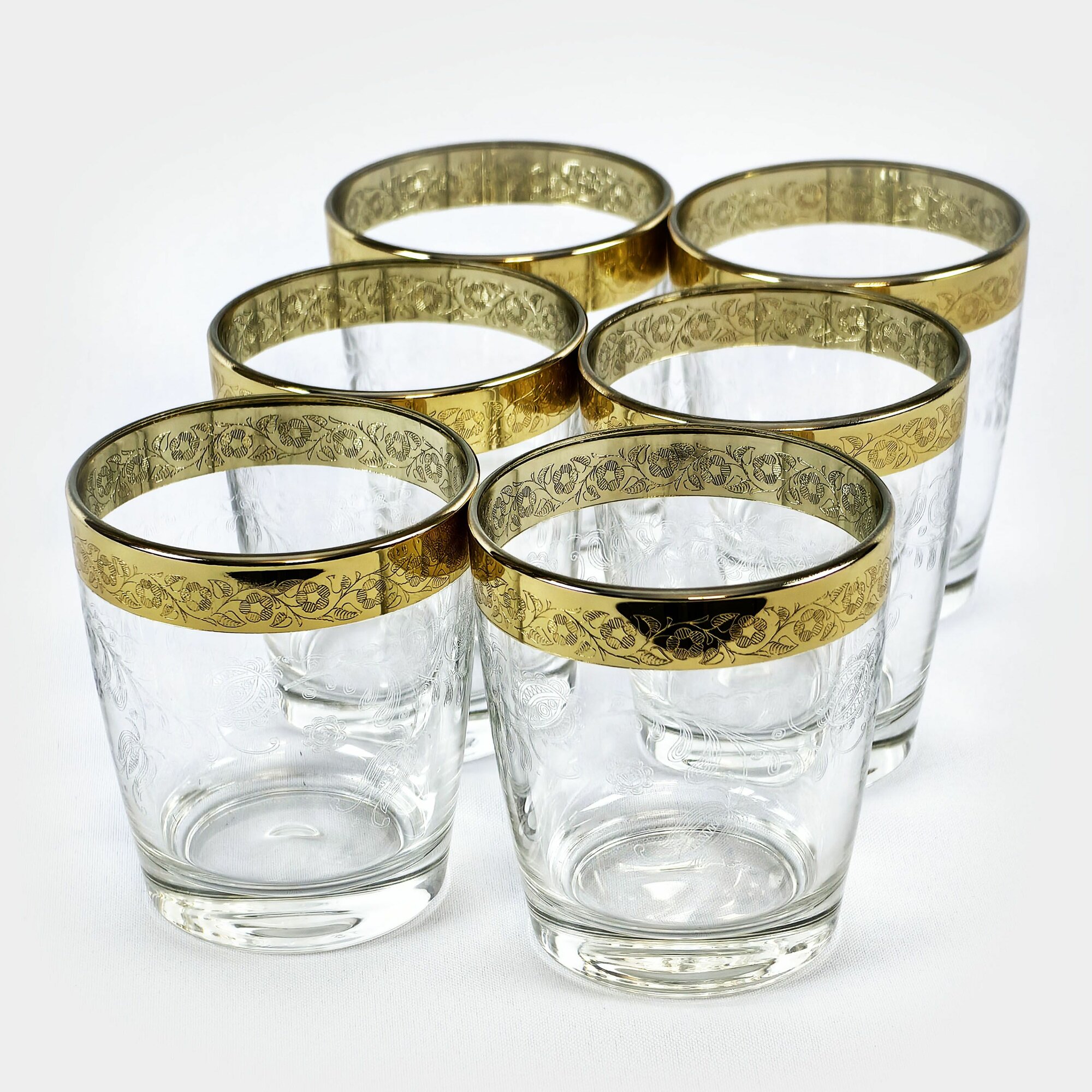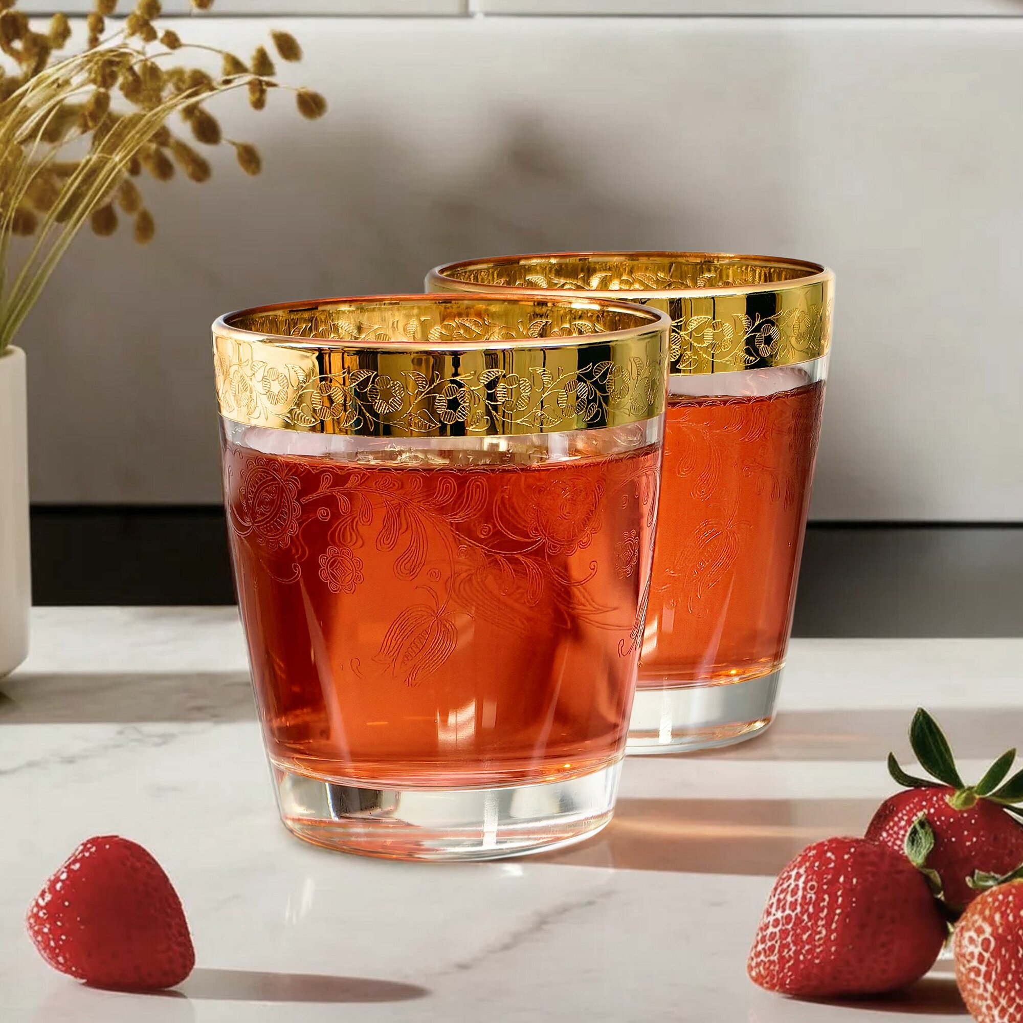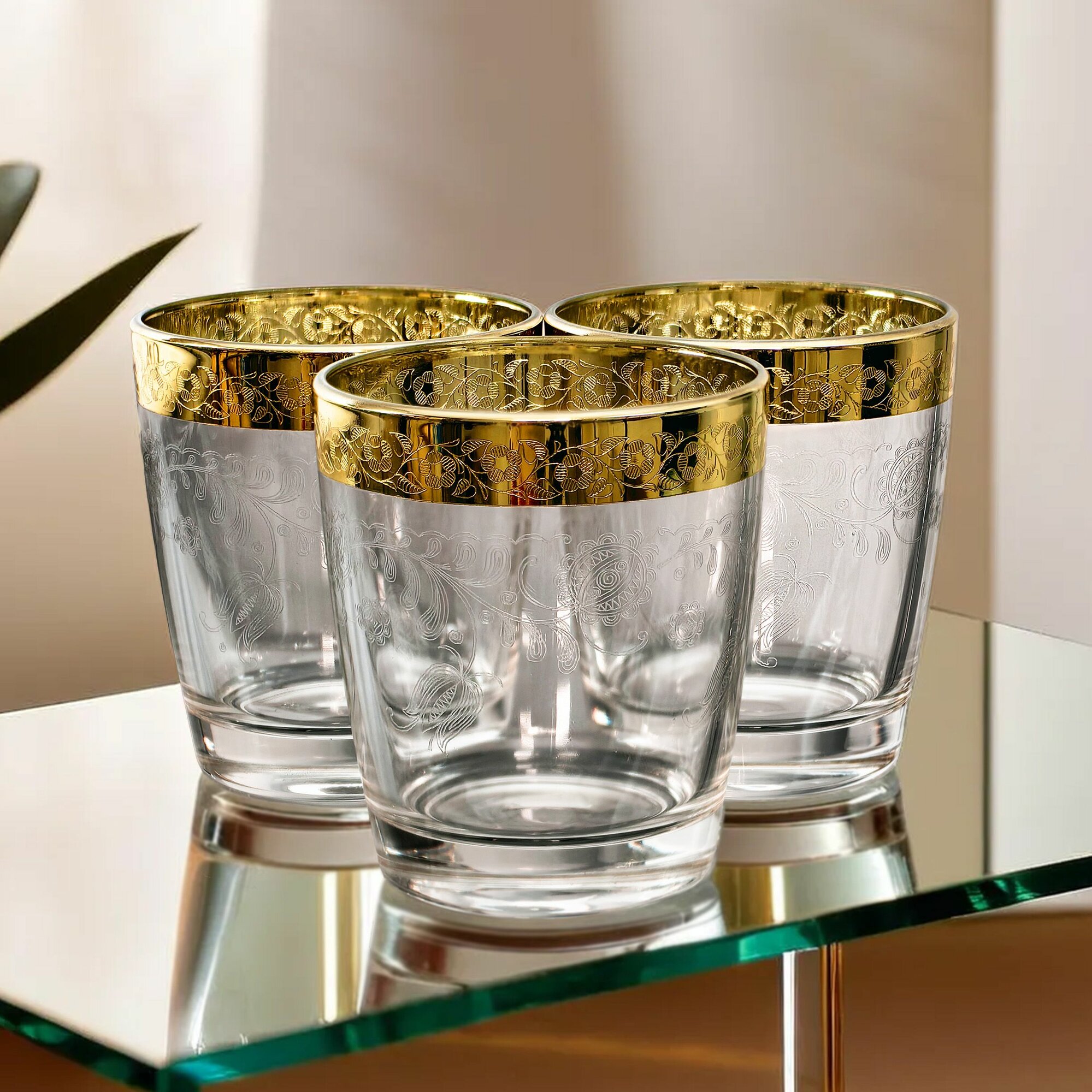 Подарочный набор стаканов с алмазной гравировкой для коктейлей PROMSIZ версаль голд, 300 мл , 6 шт.