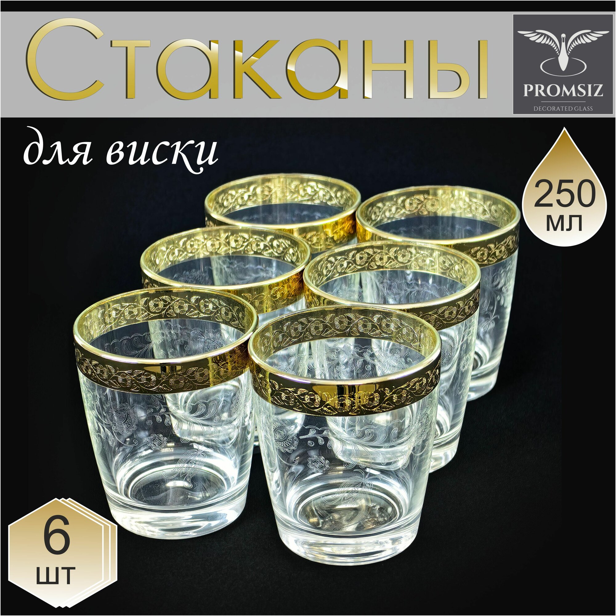 Подарочный набор стаканов для виски с алмазной гравировкой PROMSIZ барокко 255 мл, 6 шт.