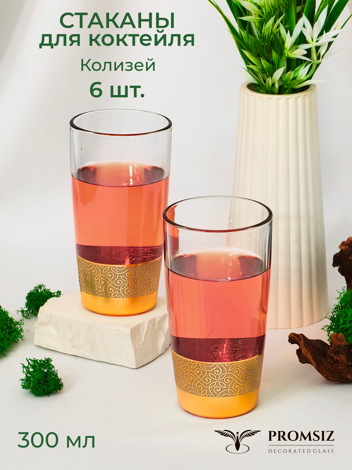 Подарочный набор стаканов PROMSIZ версаль для коктейлей 390 мл, 6 шт.