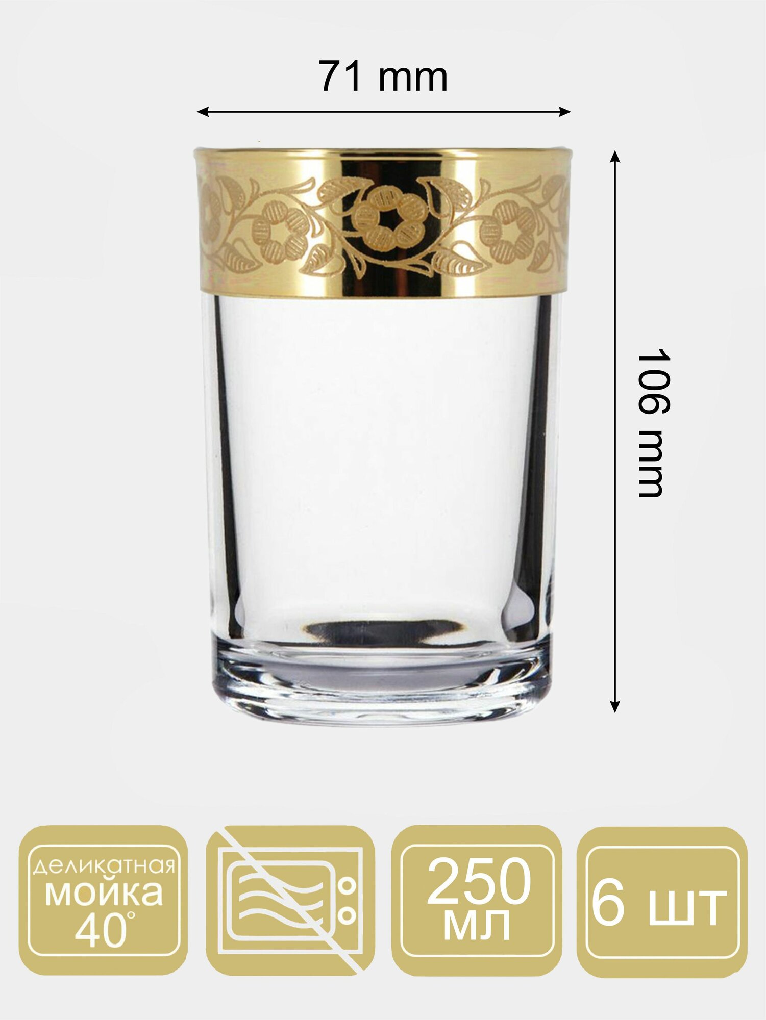Подарочный набор стаканов с алмазной гравировкой для коктейлей PROMSIZ версаль голд, 300 мл , 6 шт.