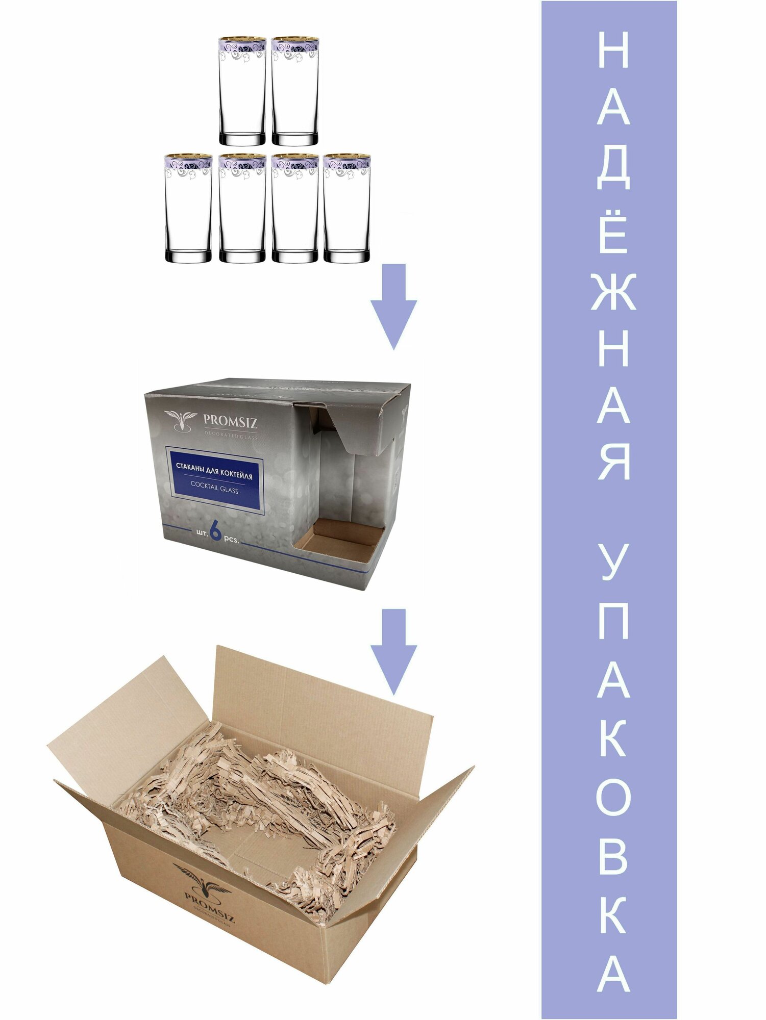 Подарочный набор стаканов с алмазной гравировкой для коктейлей PROMSIZ аметист поло, 300 мл , 6 шт.