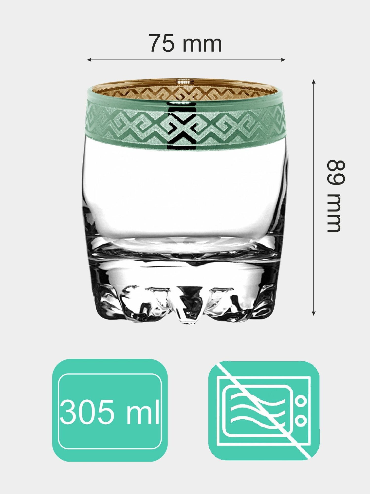 Подарочный набор стаканов с алмазной гравировкой для коктейлей PROMSIZ версаль голд, 300 мл , 6 шт.