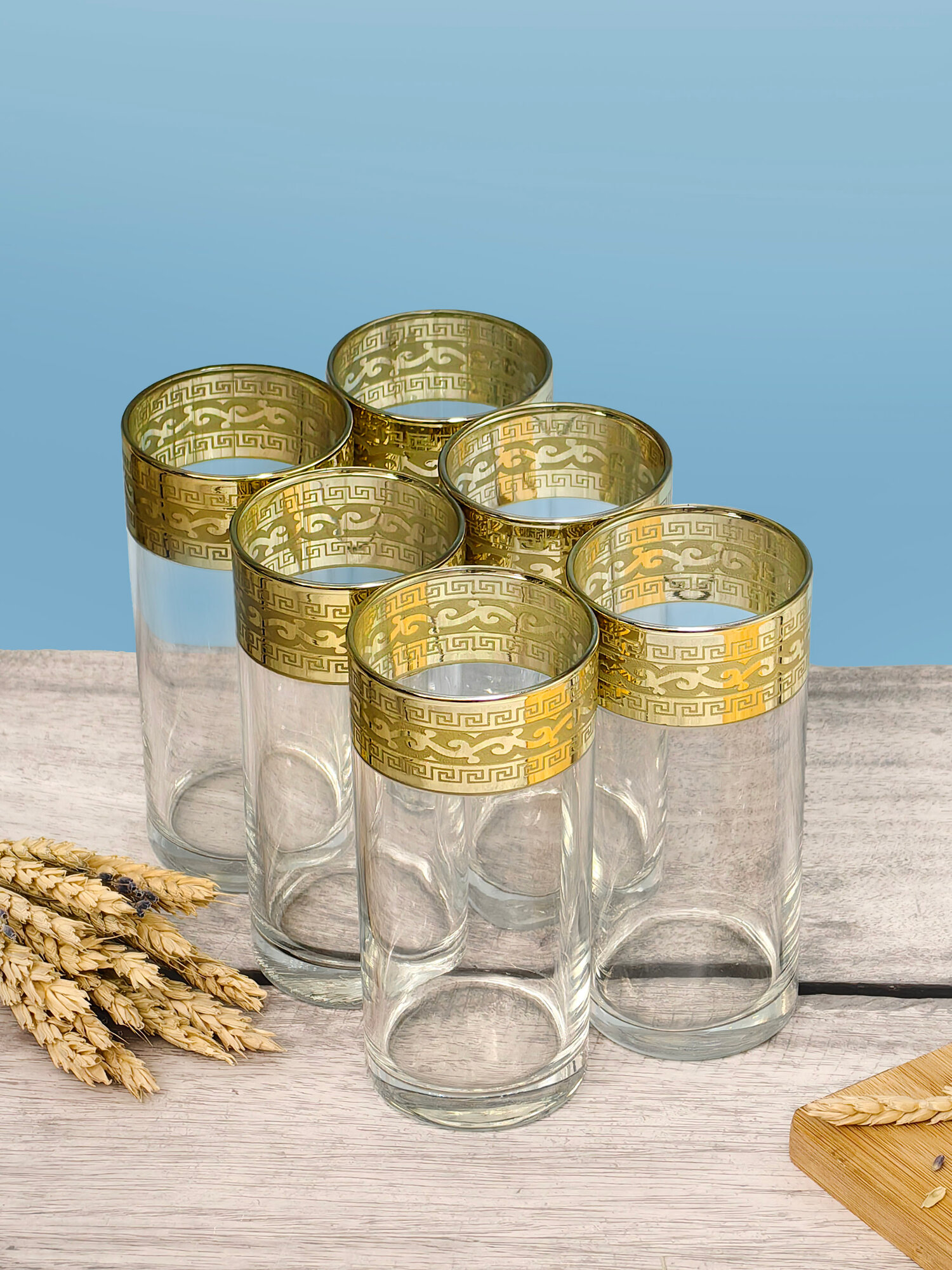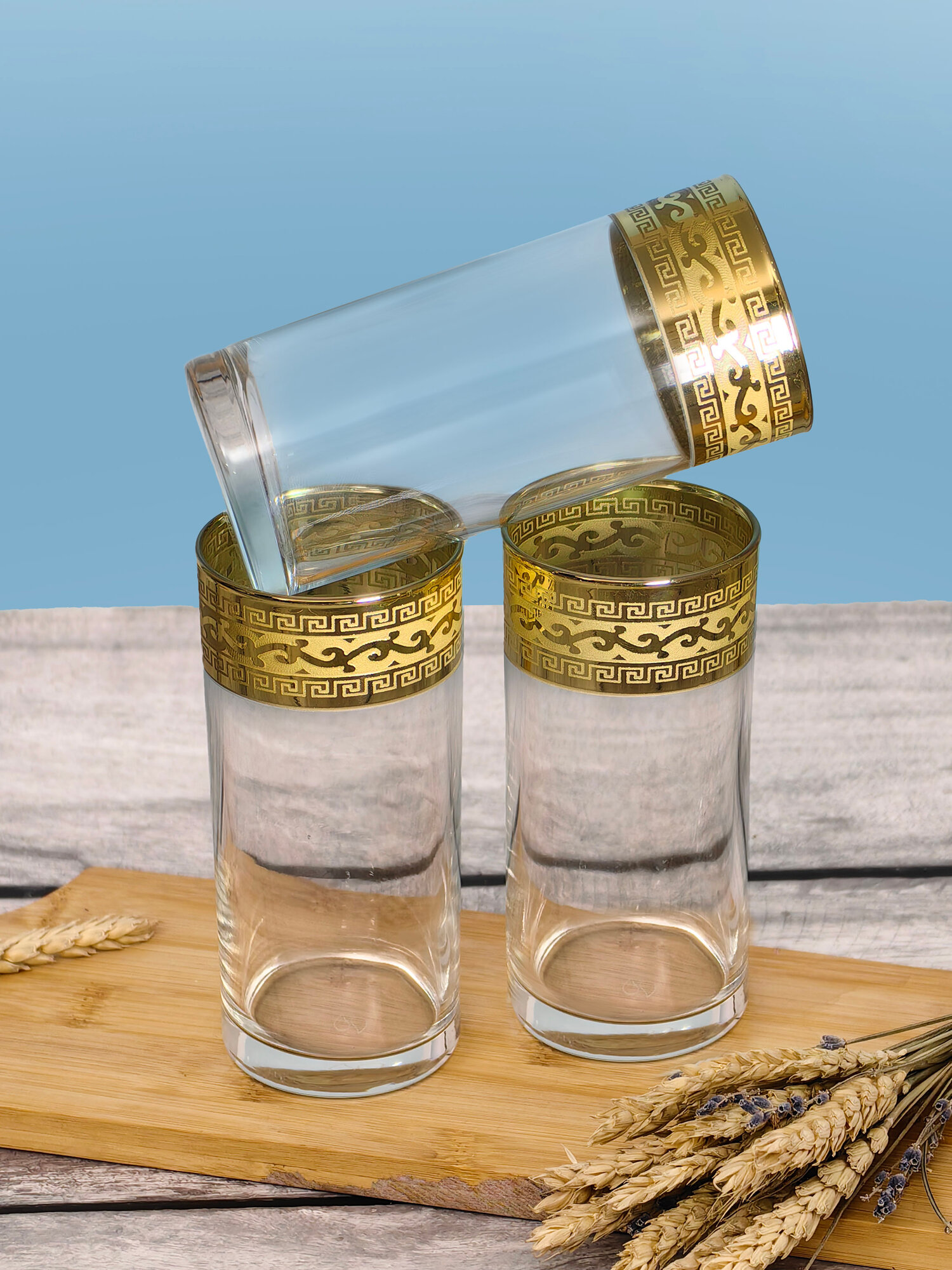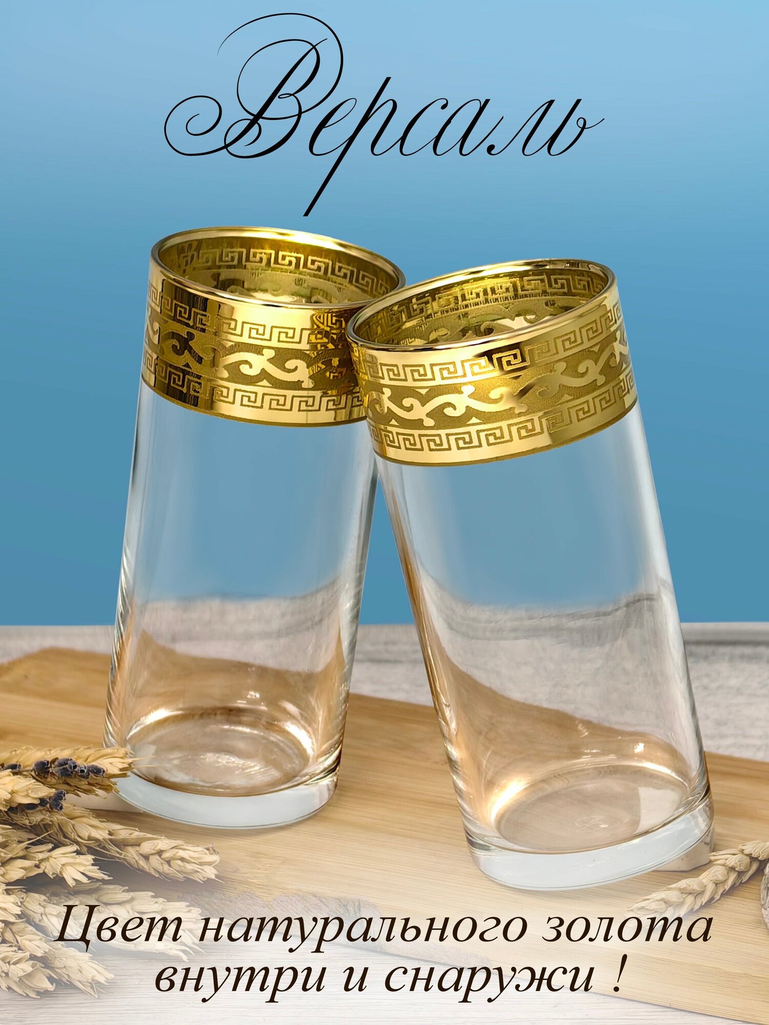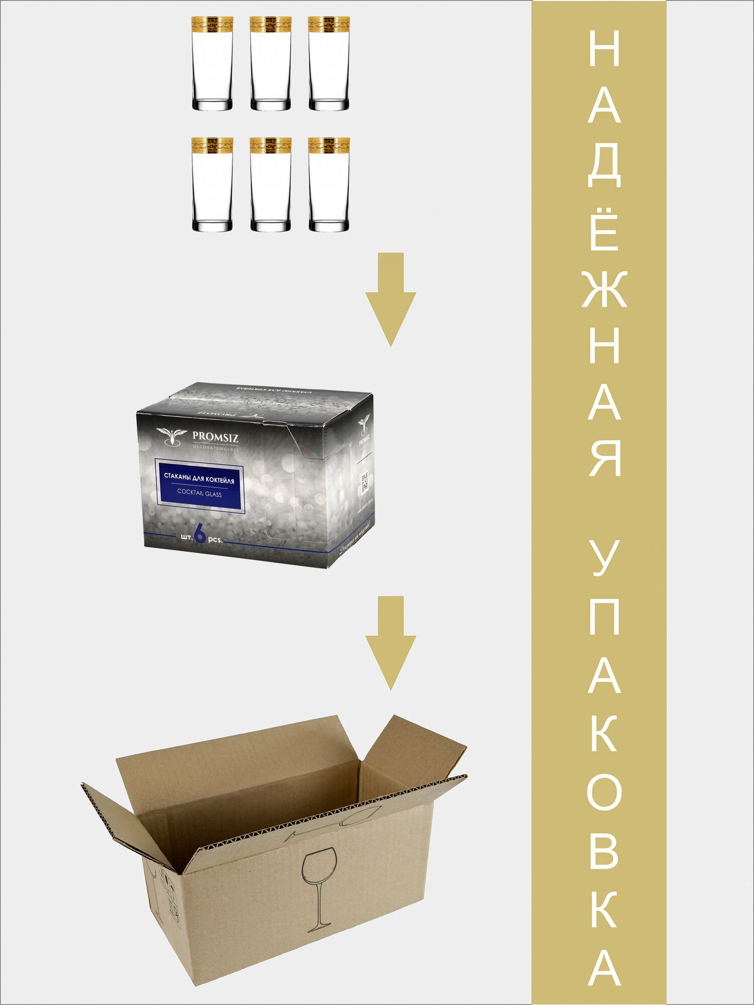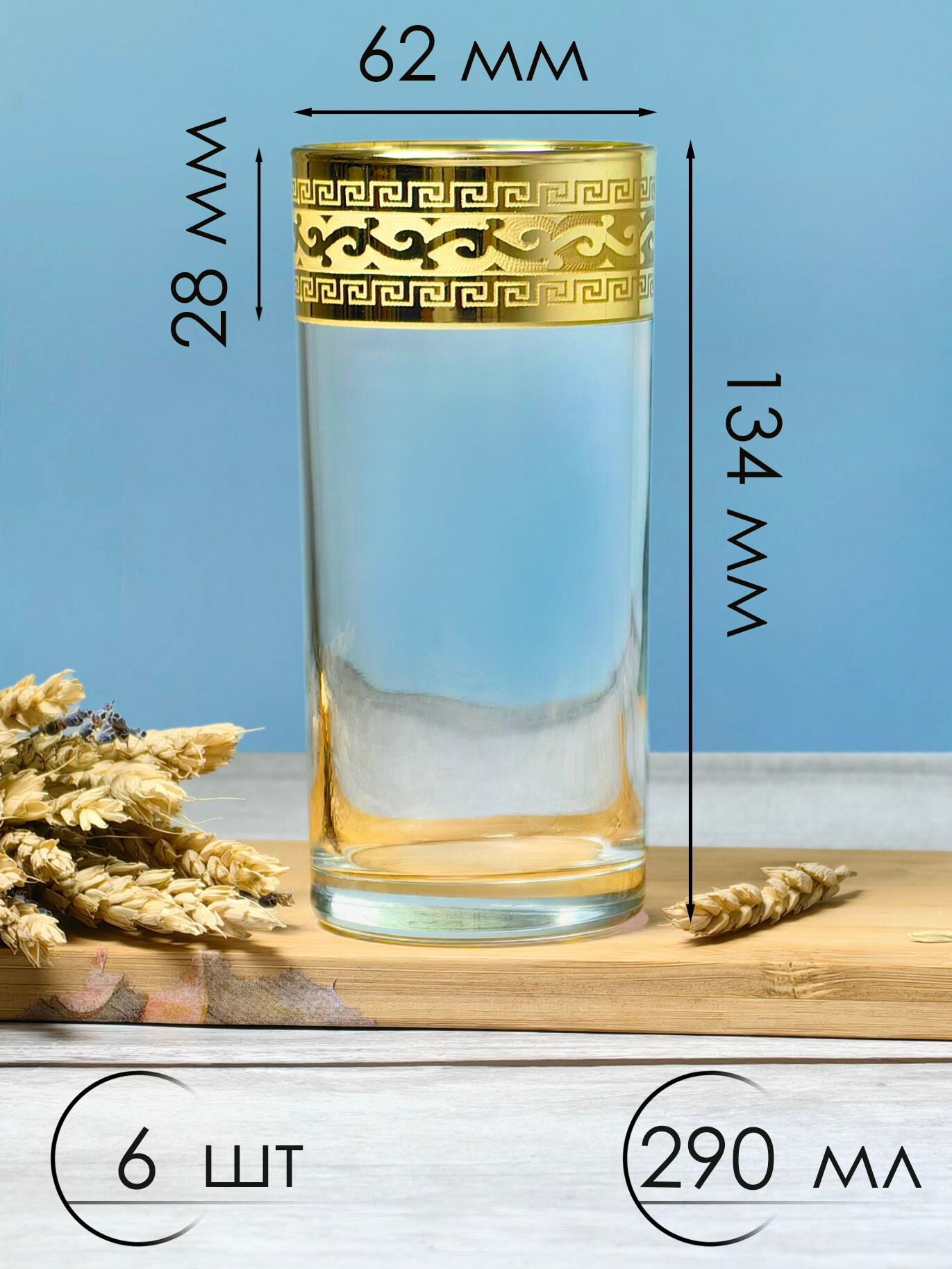 Подарочный набор стаканов с алмазной гравировкой для коктейлей PROMSIZ версаль голд, 300 мл , 6 шт.