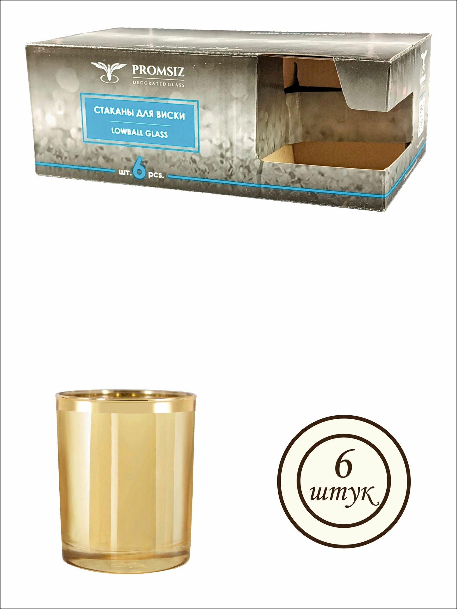 Подарочный набор стаканов для виски PROMSIZ янтарь поло, 250 мл, 6 шт.