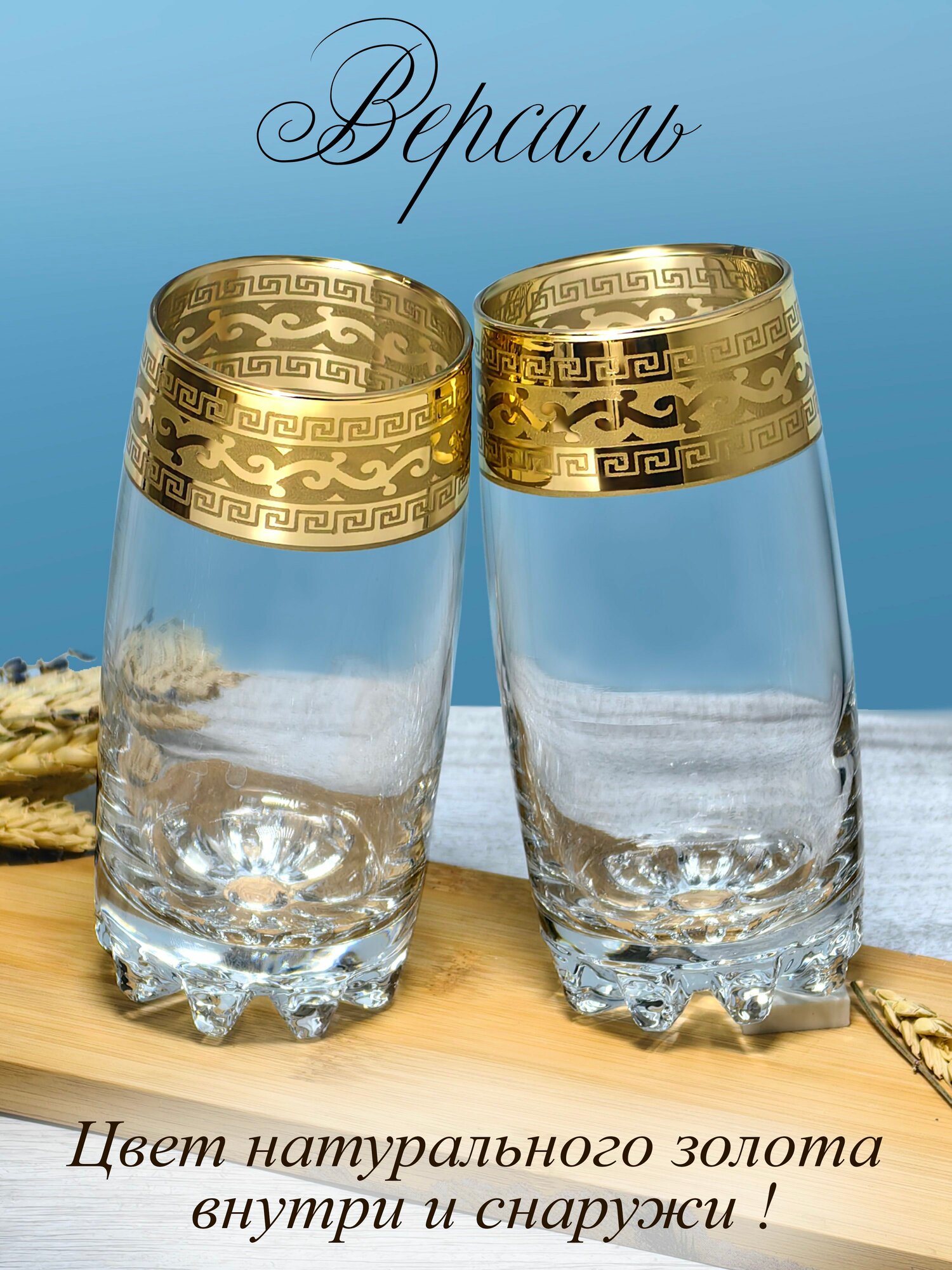 Подарочный набор стаканов с алмазной гравировкой для коктейлей PROMSIZ версаль голд, 300 мл , 6 шт.