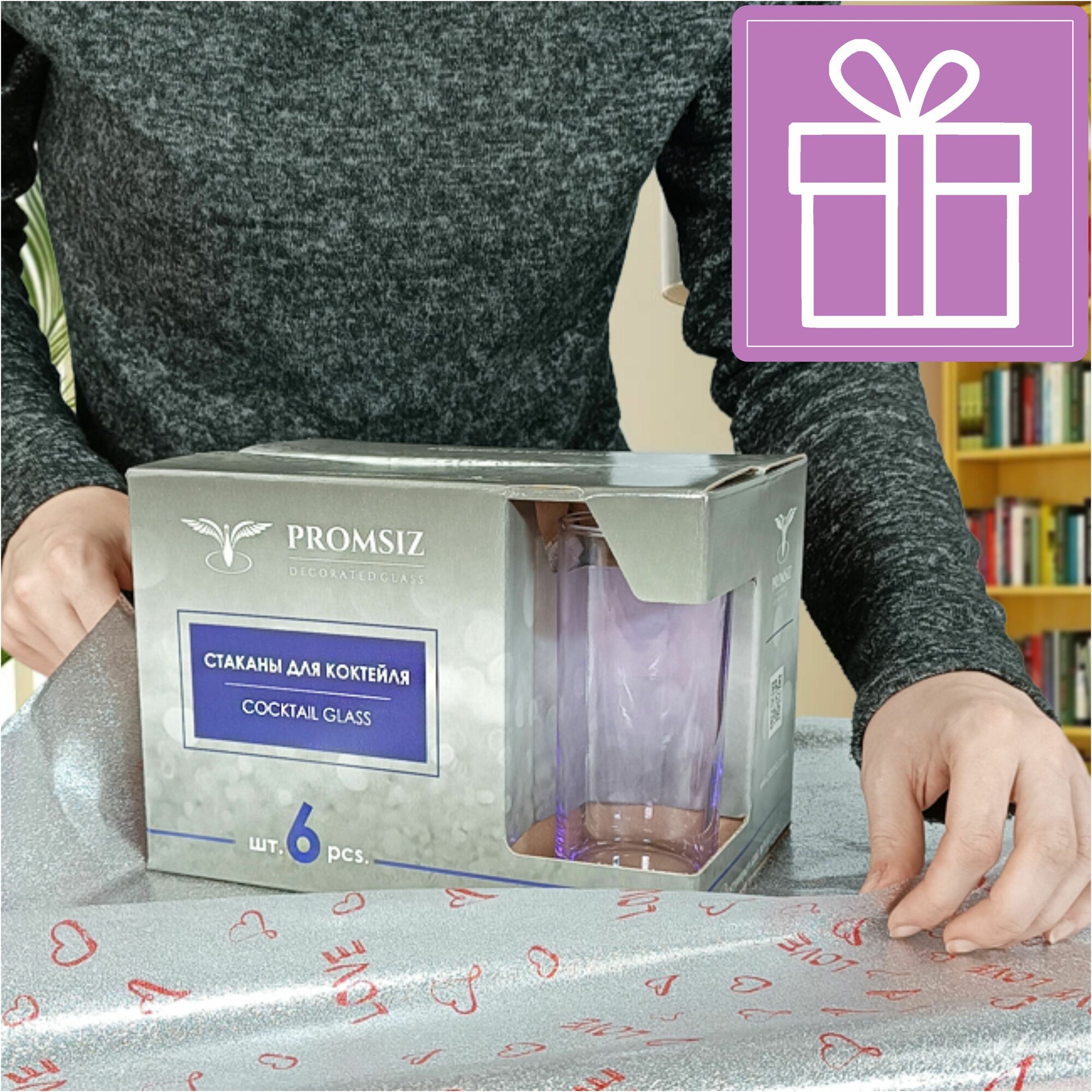 Набор стаканов в подарочной упаковкес алмазной гравировкой PROMSIZ нежность, 250 мл, 6 шт.
