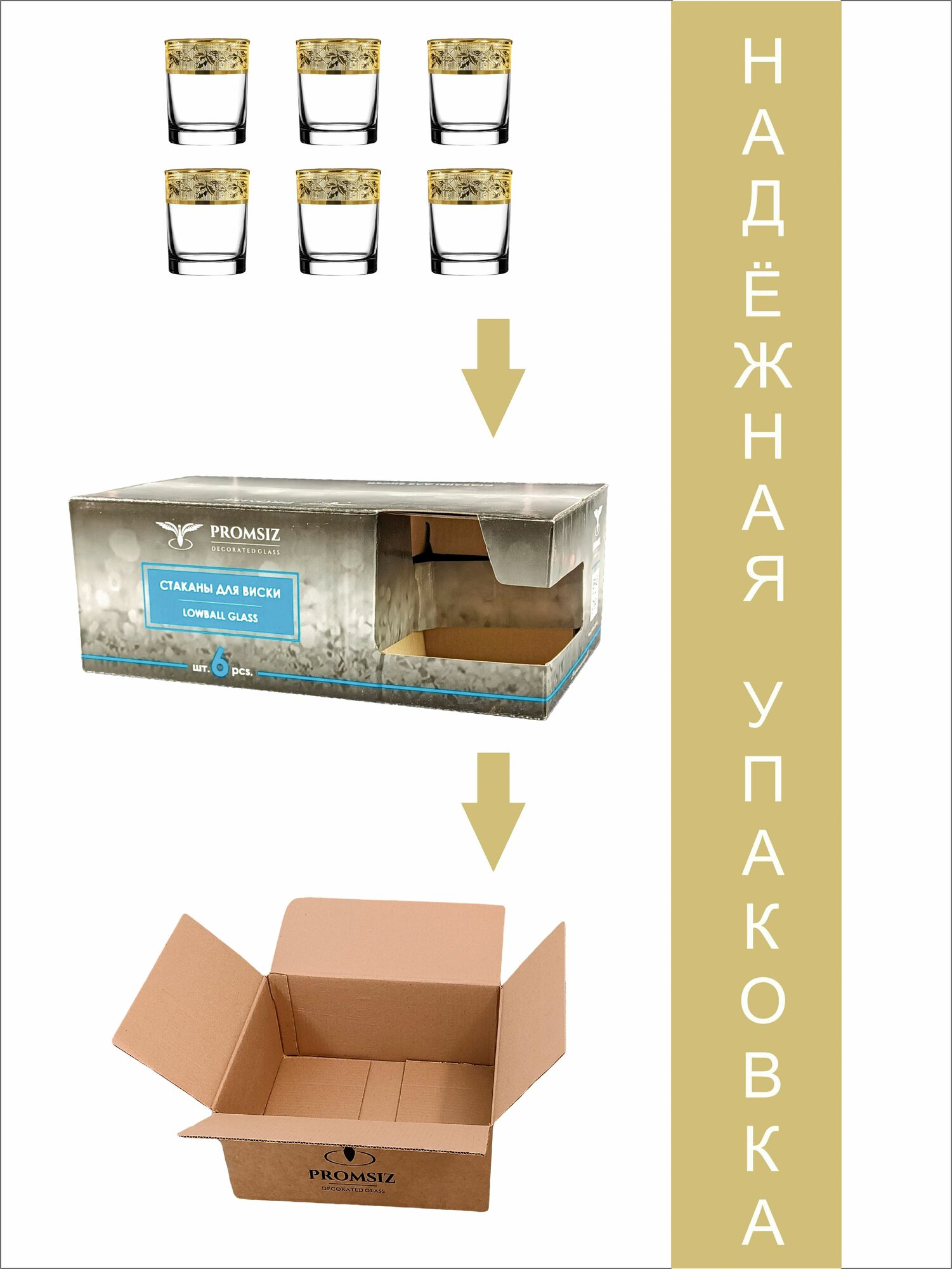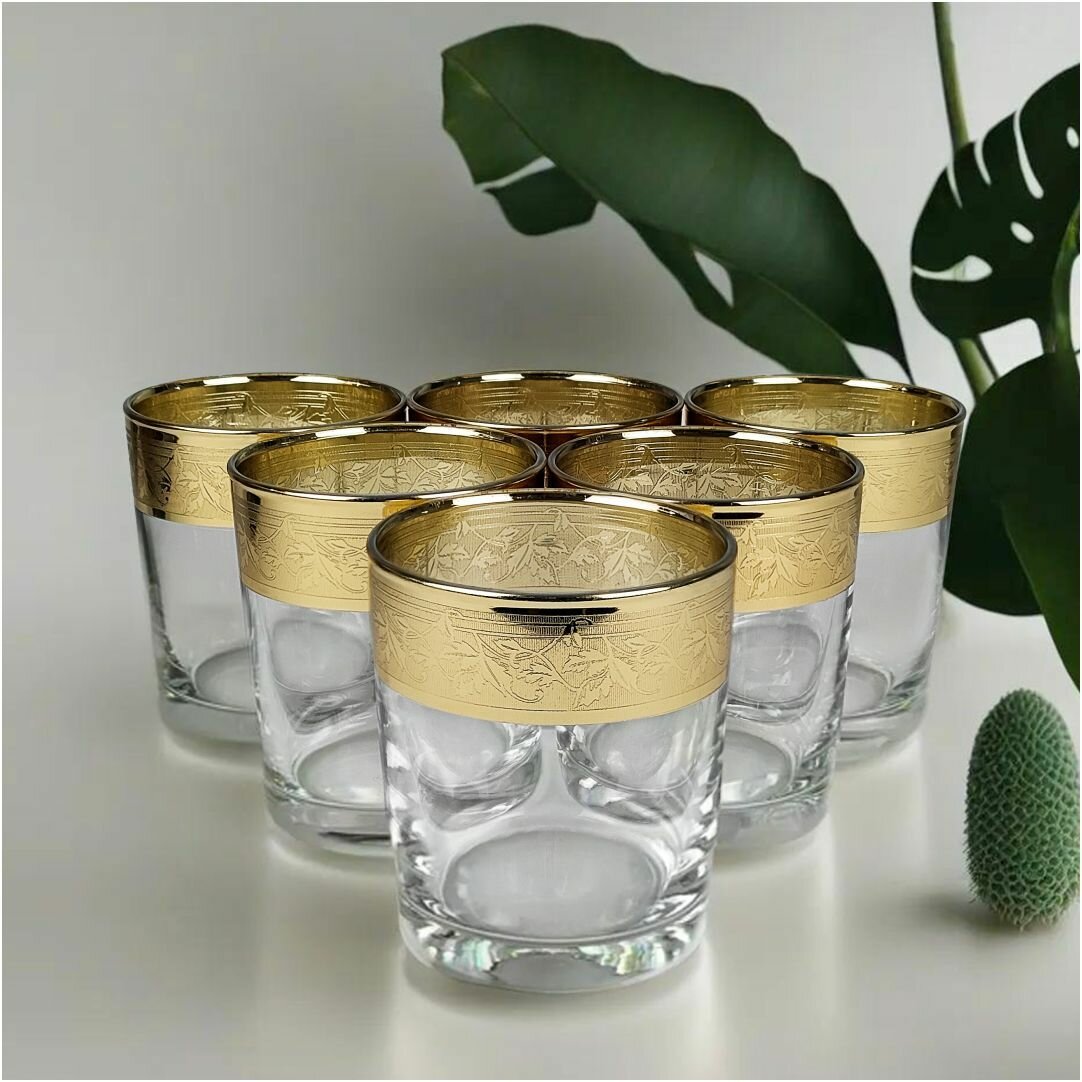 Подарочный набор стаканов с алмазной гравировкой для коктейлей PROMSIZ версаль голд, 300 мл , 6 шт.