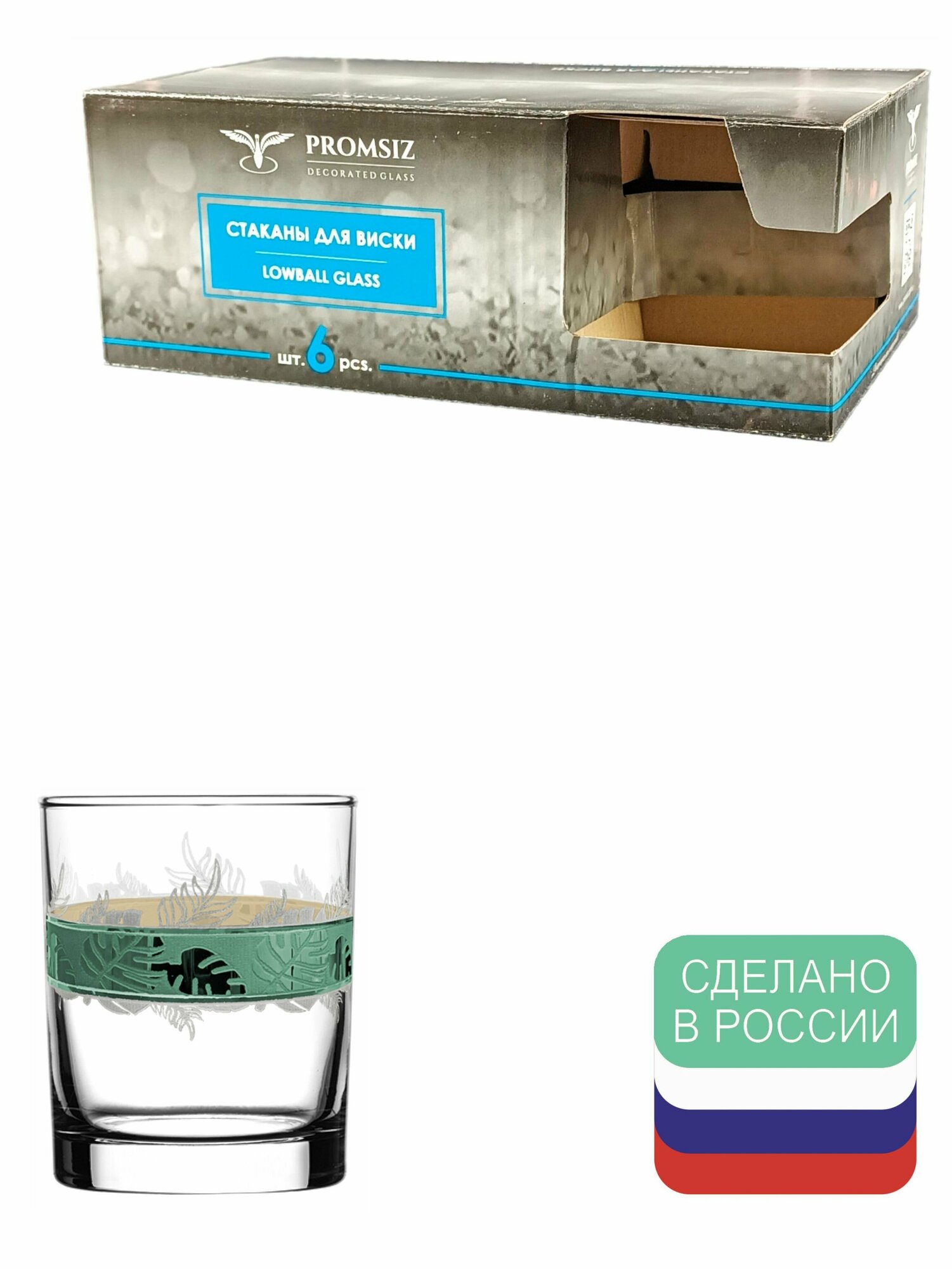 Подарочный набор стаканов для виски с алмазной гравировкой PROMSIZ Настроение 255 мл, 6 шт.