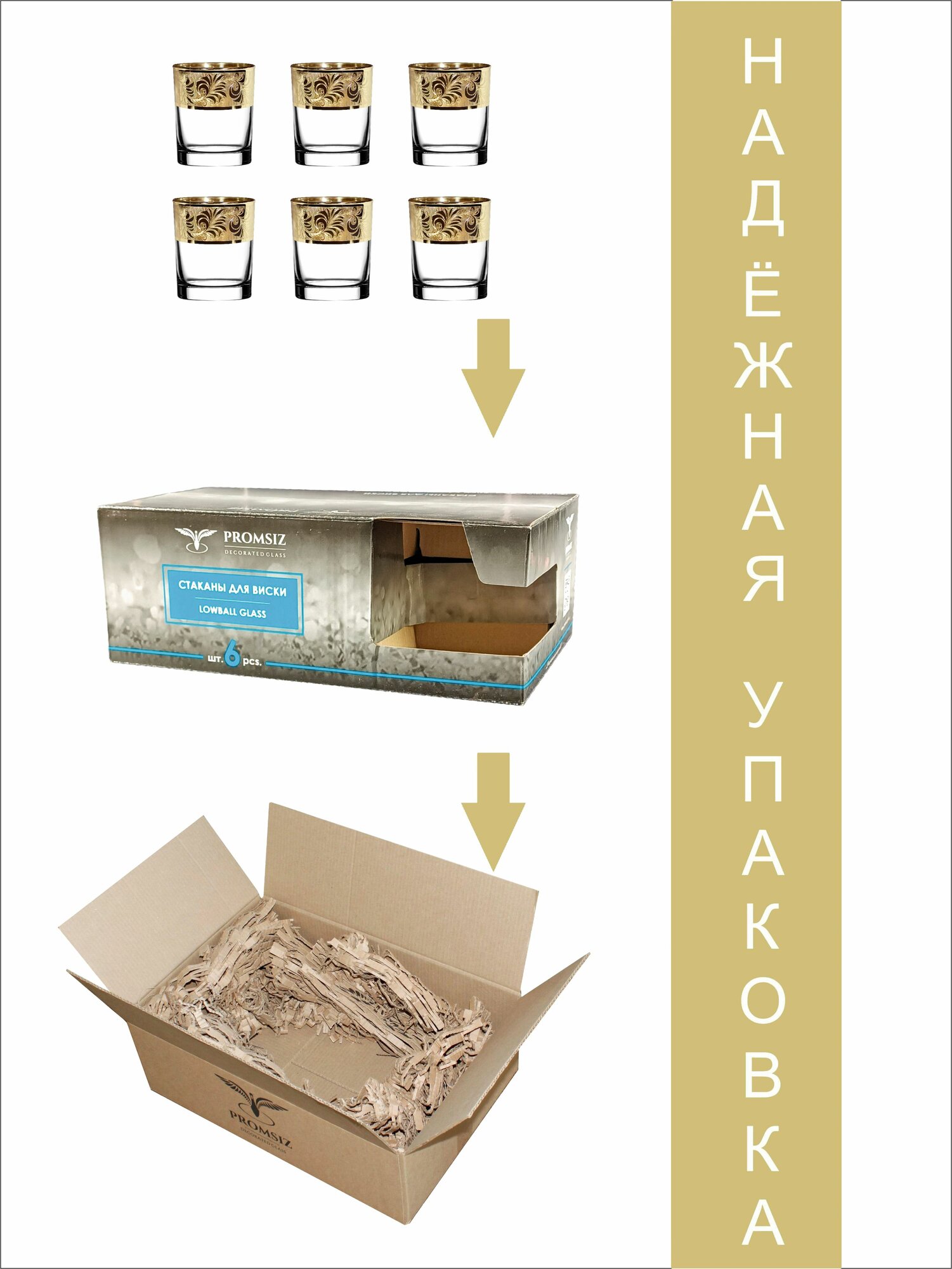 Подарочный набор стаканов для виски с алмазной гравировкой PROMSIZ барокко 255 мл, 6 шт.