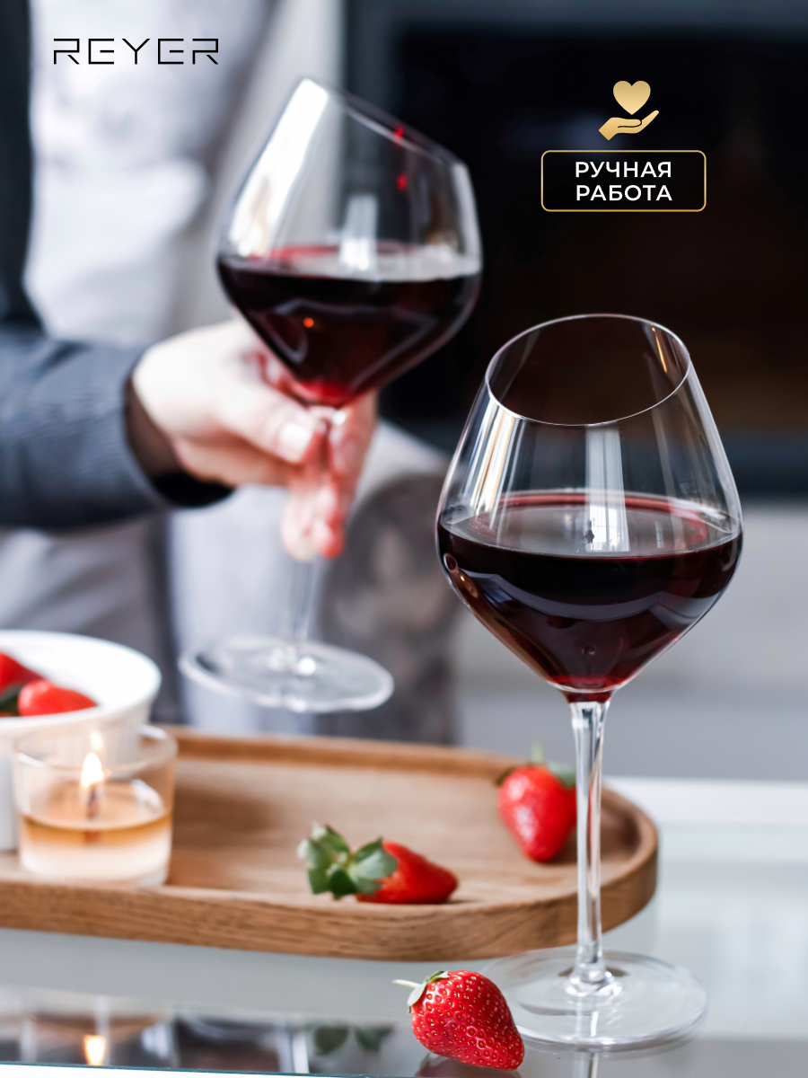 Бокалы для красного и белого вина Reyer 2 шт, 475 мл, ручная работа, подарочный набор интересное: