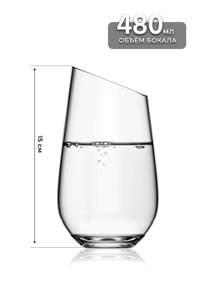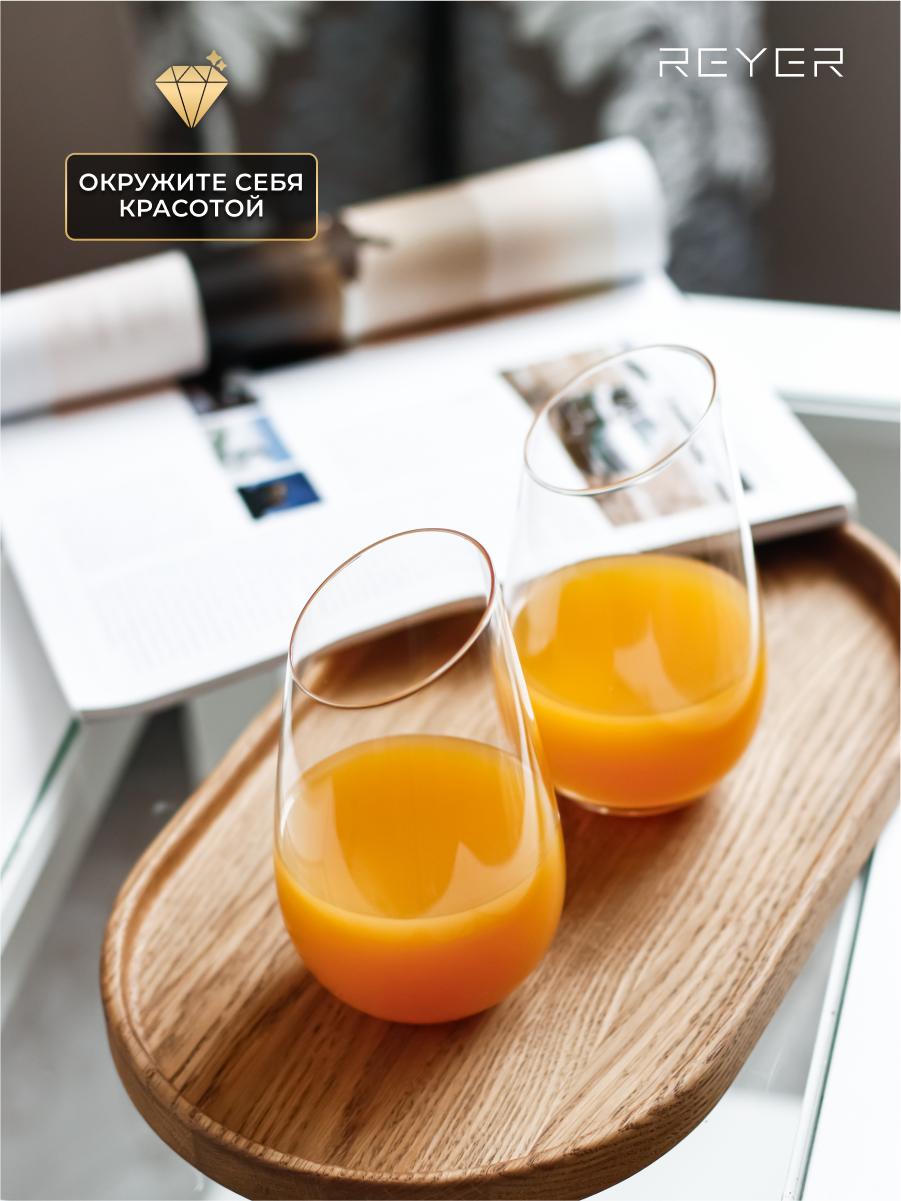 Набор бокалов Reyer для воды, сока, коктейлей, 480 мл, стекло, ручная работа, подарочный набор интересное: