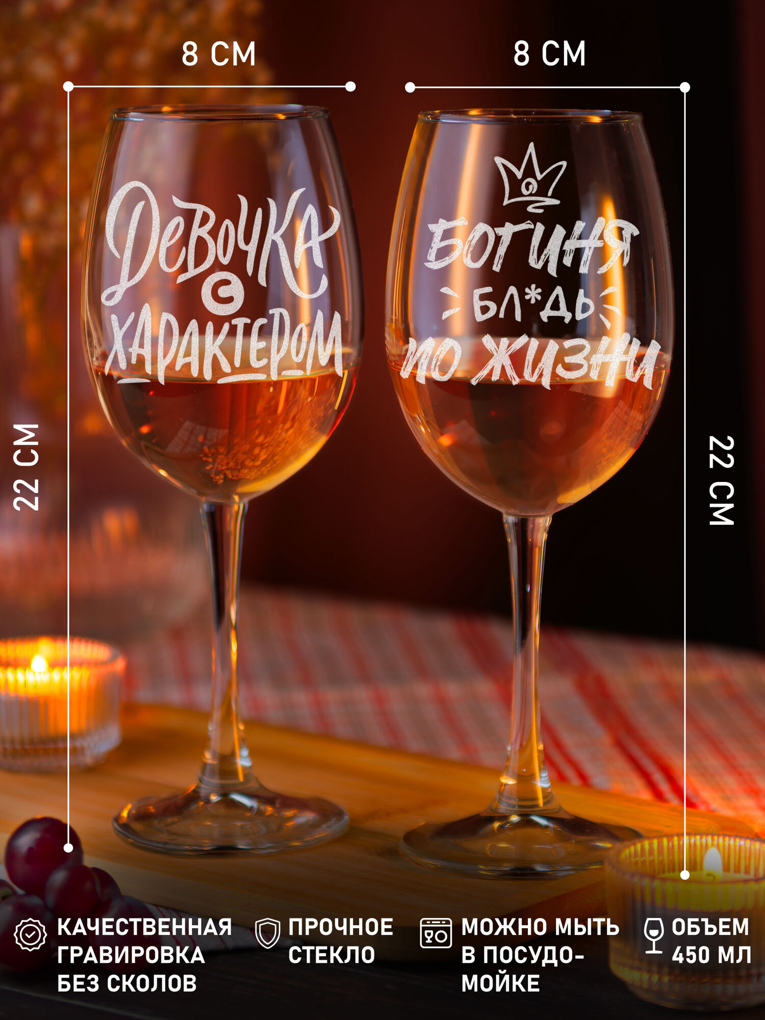 Набор бокалов для вина шальная алкогольвица и королева всего