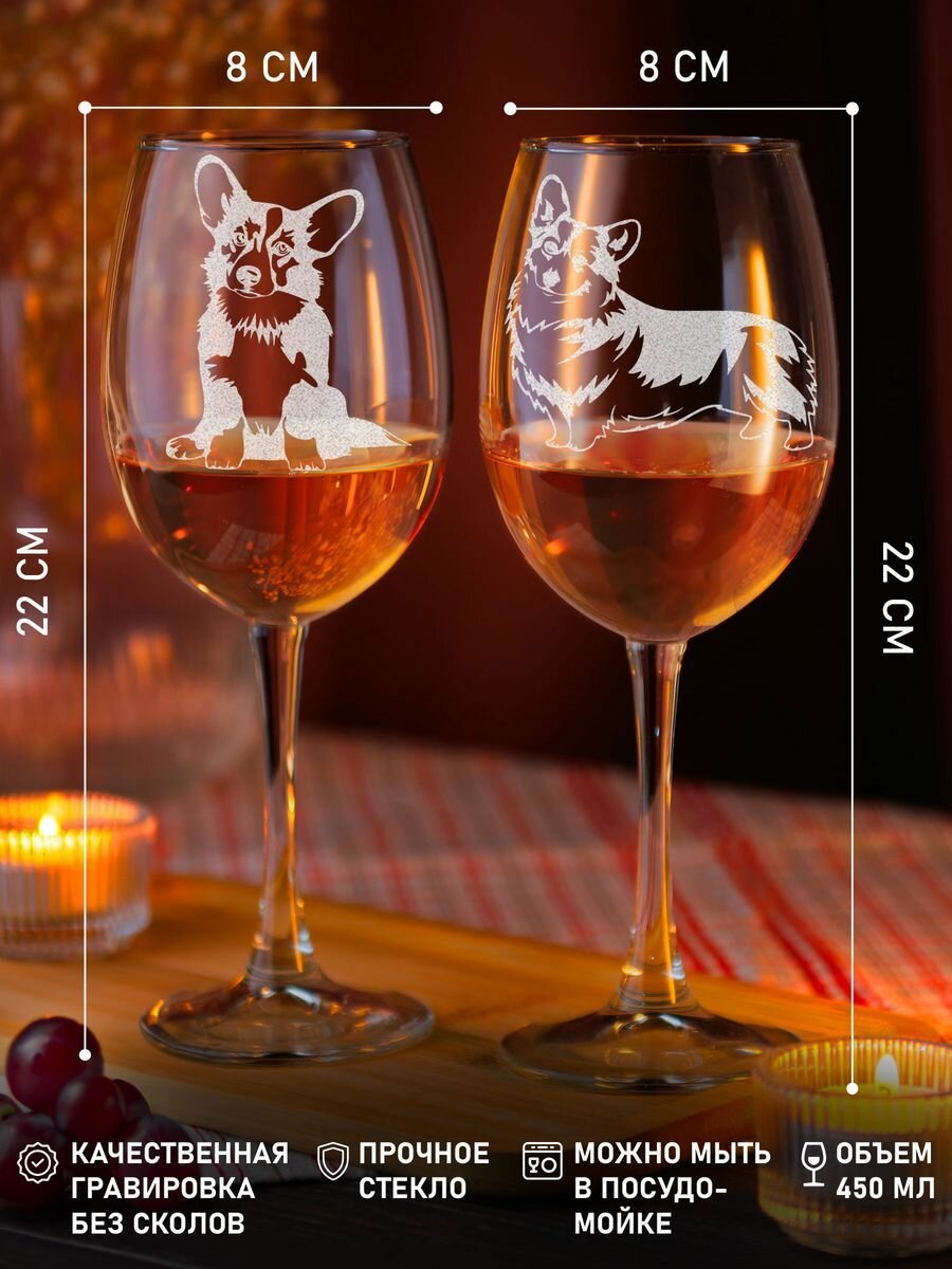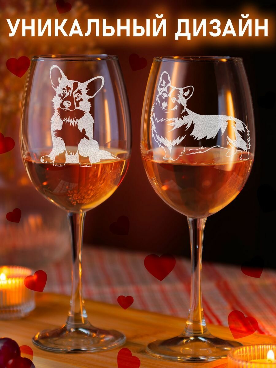 Купить Набор бокалов для вина LaserGlass с рисунком Корги