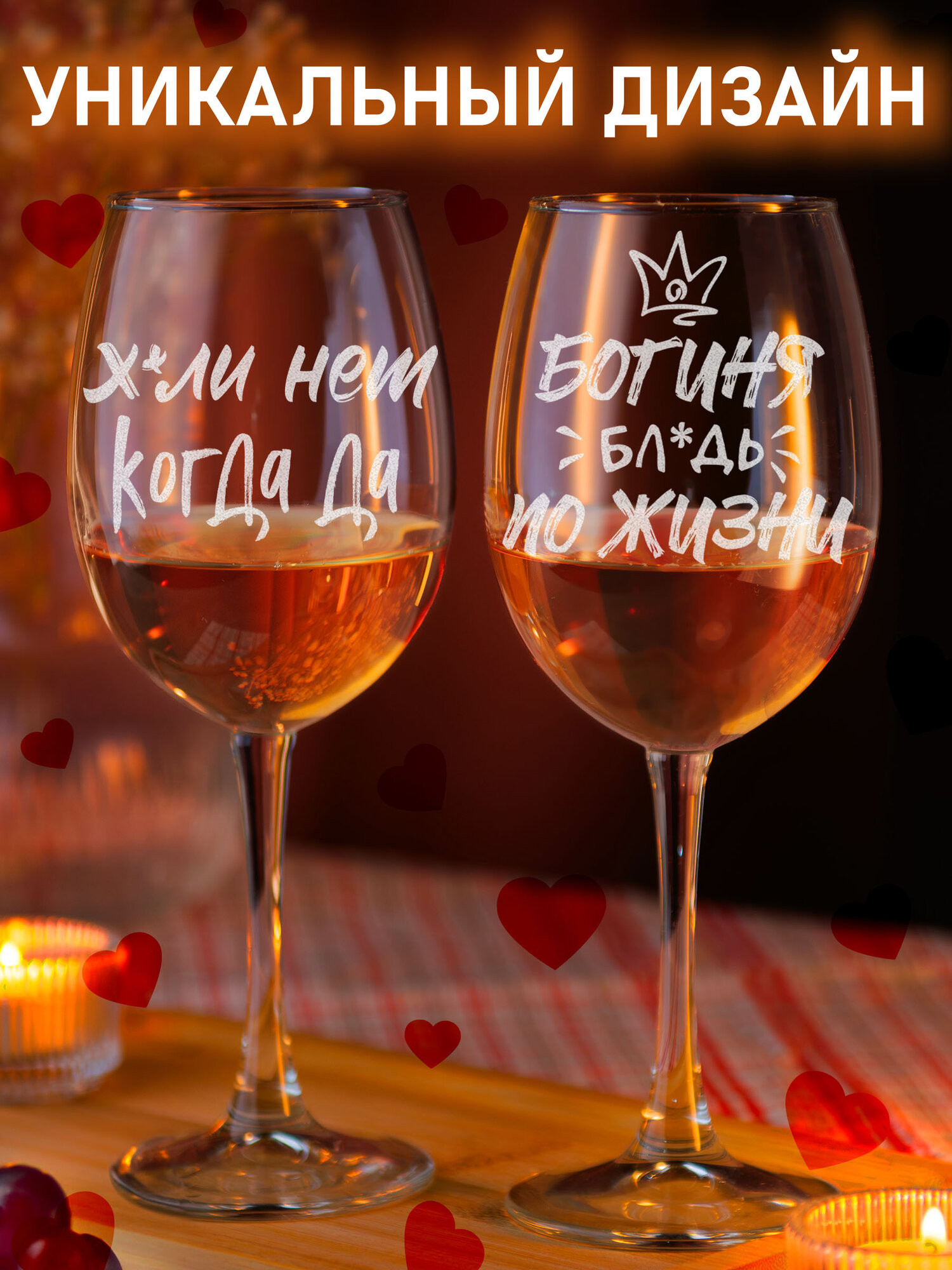 Набор бокалов для вина шальная алкогольвица и королева всего