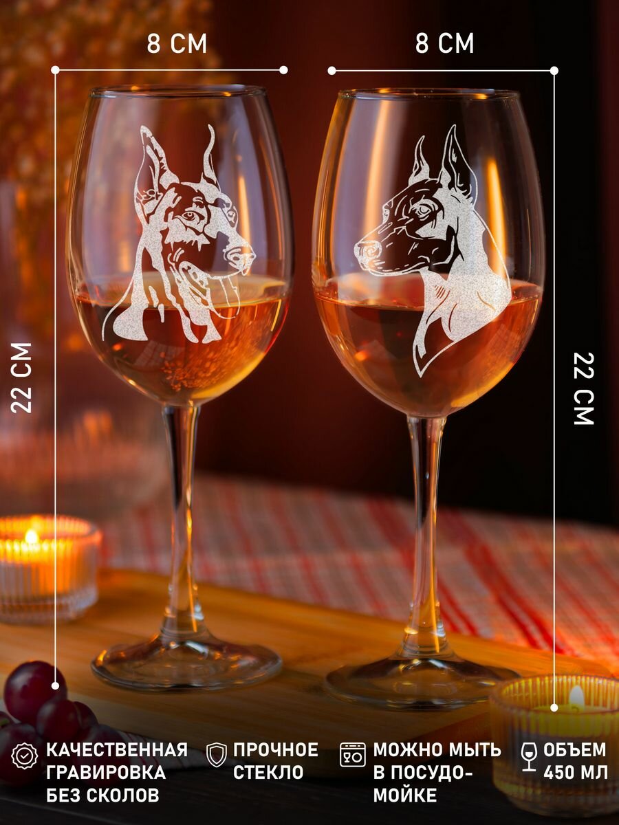 Купить Набор бокалов для вина LaserGlass с рисунком доберман