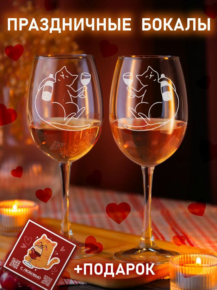Купить Набор бокалов для вина LaserGlass с рисунком кот с вином