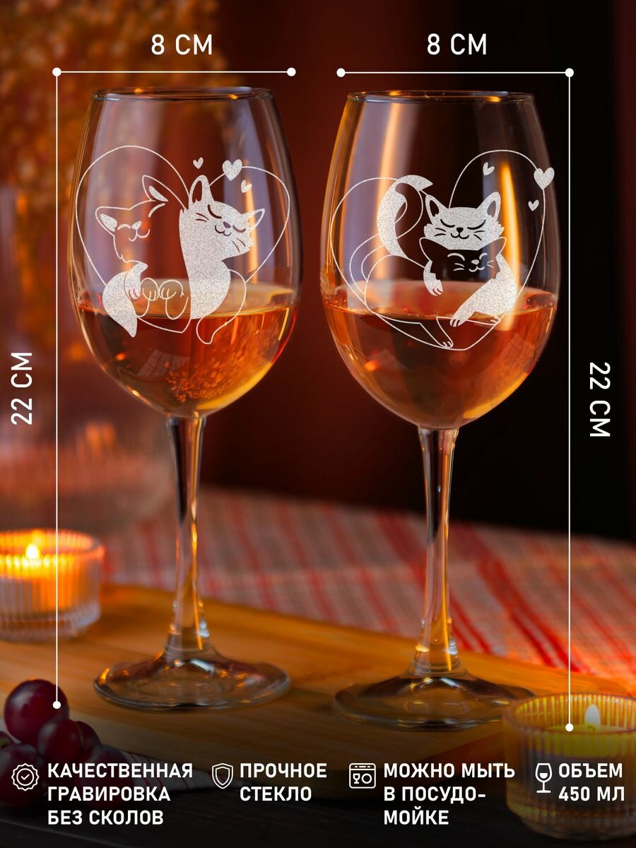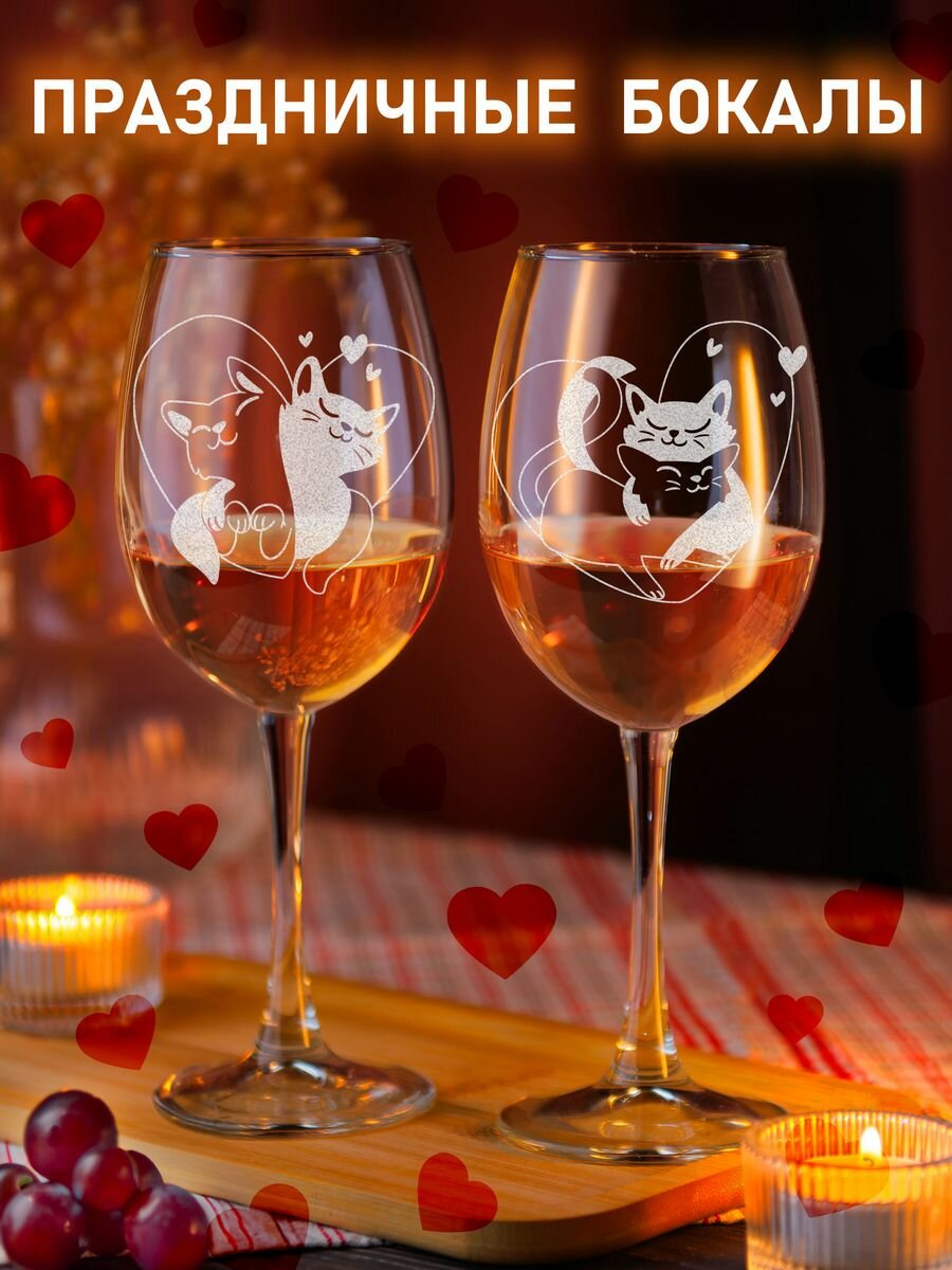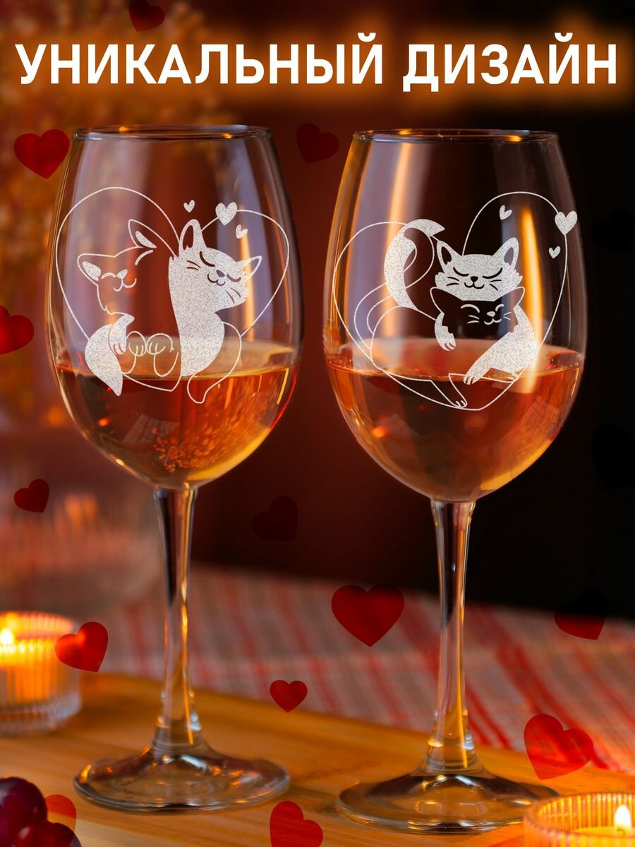 Купить Набор бокалов для вина с рисунком коты в сердце
