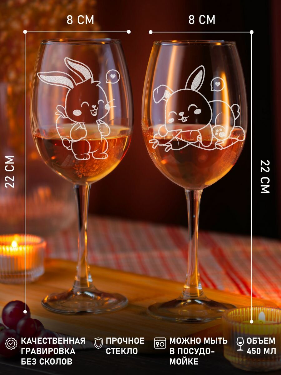 Купить Набор бокалов для вина LaserGlass с рисунком зайки
