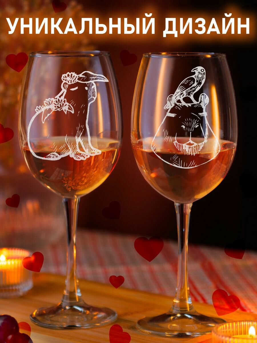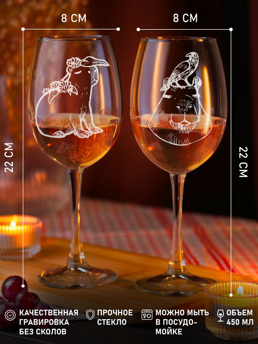 Набор бокалов для вина LaserGlass с рисунком капибара свадьба