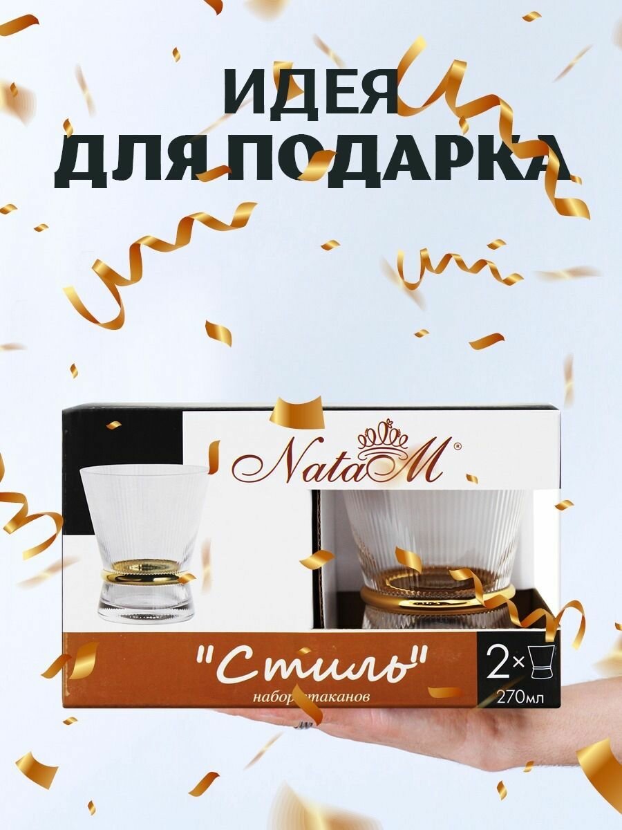 Купить Стаканы набор для сока, воды стеклянные NataM 2 шт - 270 мл в подарочной упаковке
