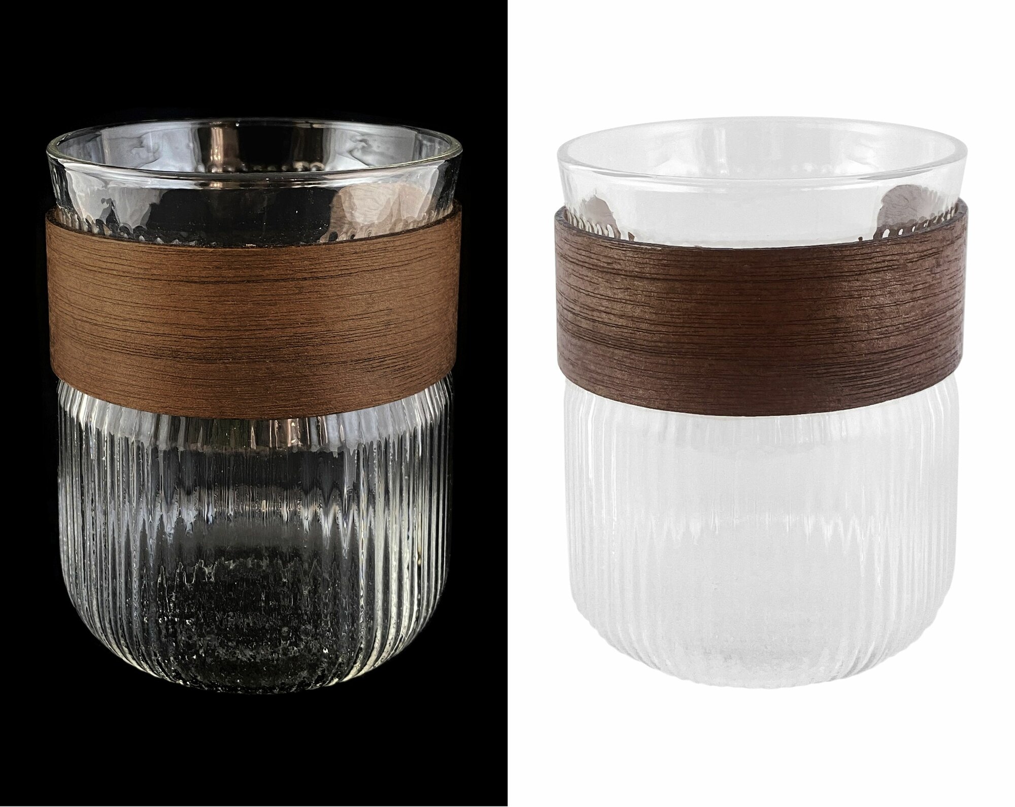 Стаканы NataM стеклянные ребристые, набор 2 шт, с бамбуковой вставкой - 450 мл