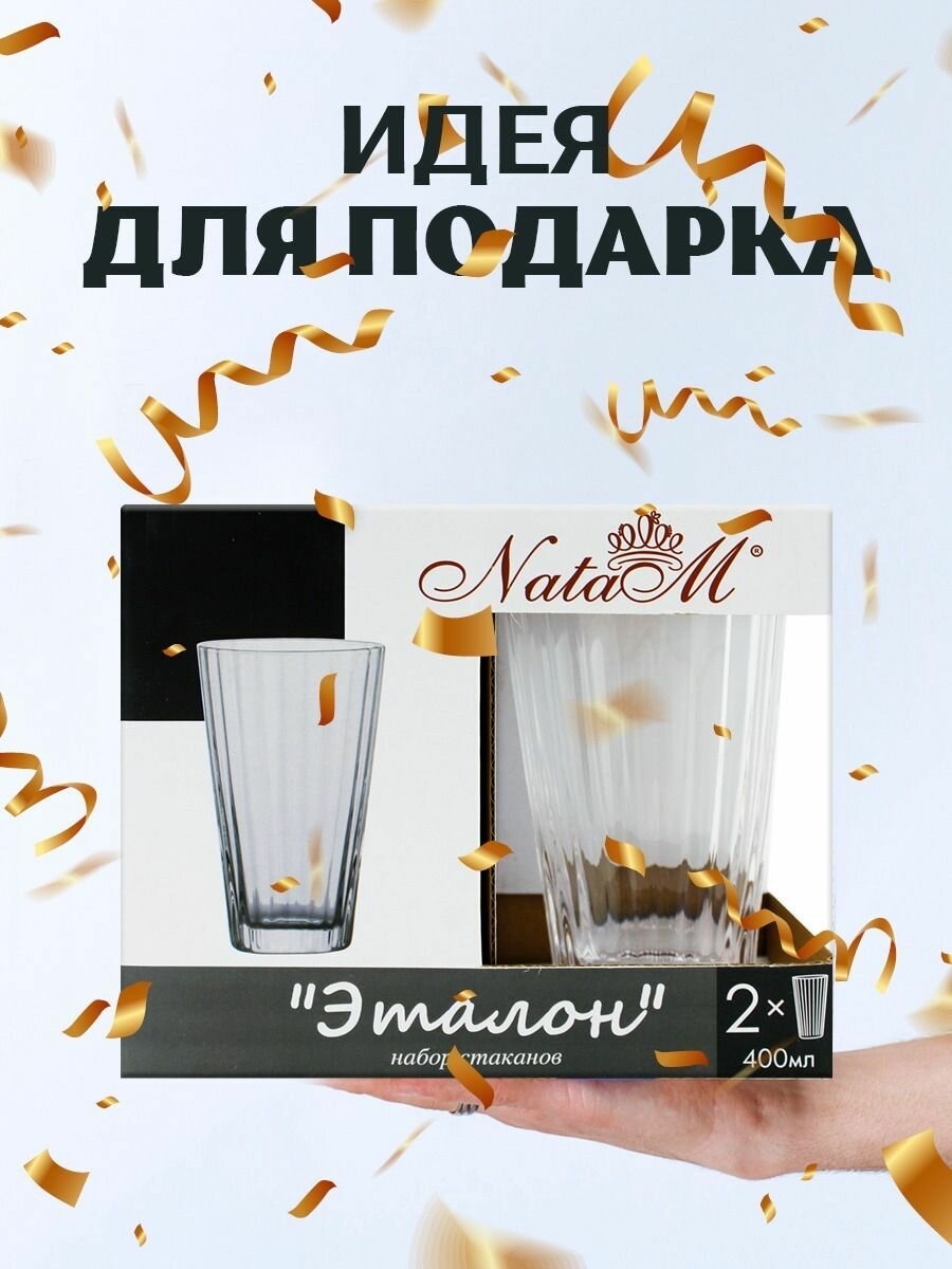 Купить Стаканы набор для сока, воды стеклянные NataM 2 шт - 400 мл в подарочной упаковке