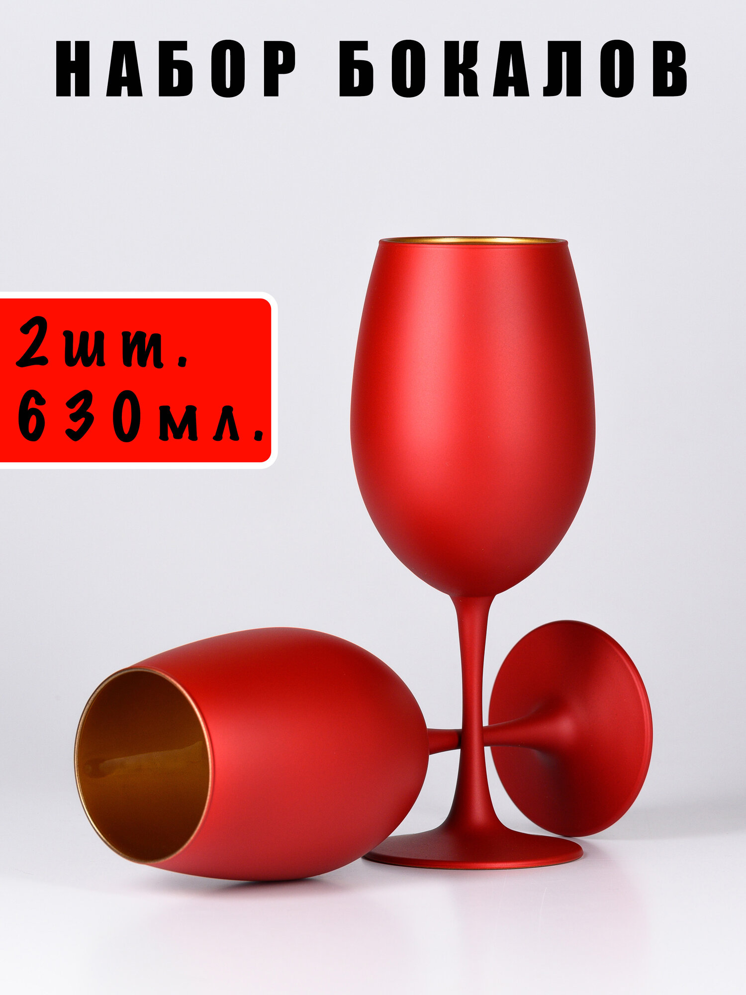 Набор бокалов, 630 мл, красный глянец с золотом, в подарочной упаковке