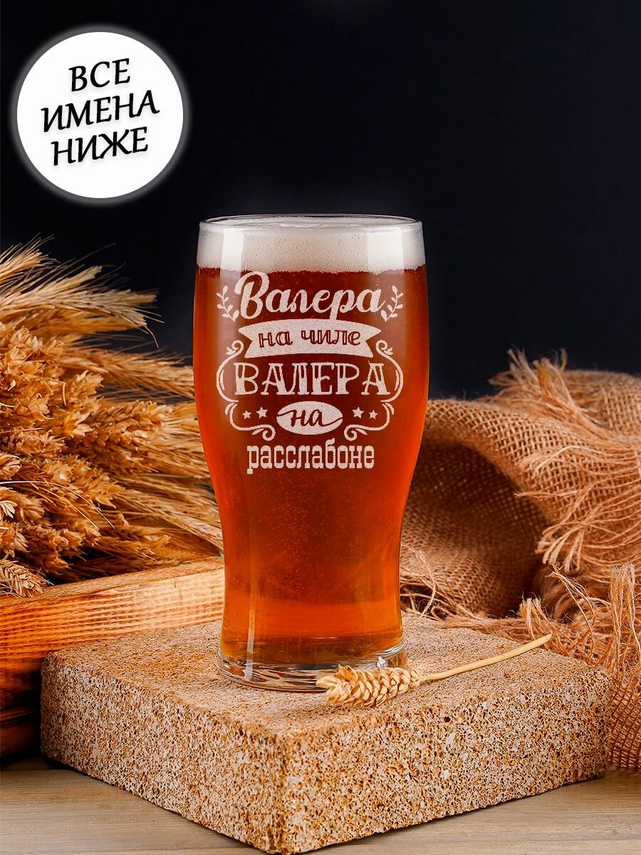 Бокал для пива подарочный именной с гравировкой Валера на чиле Валера на расслабоне интересное: