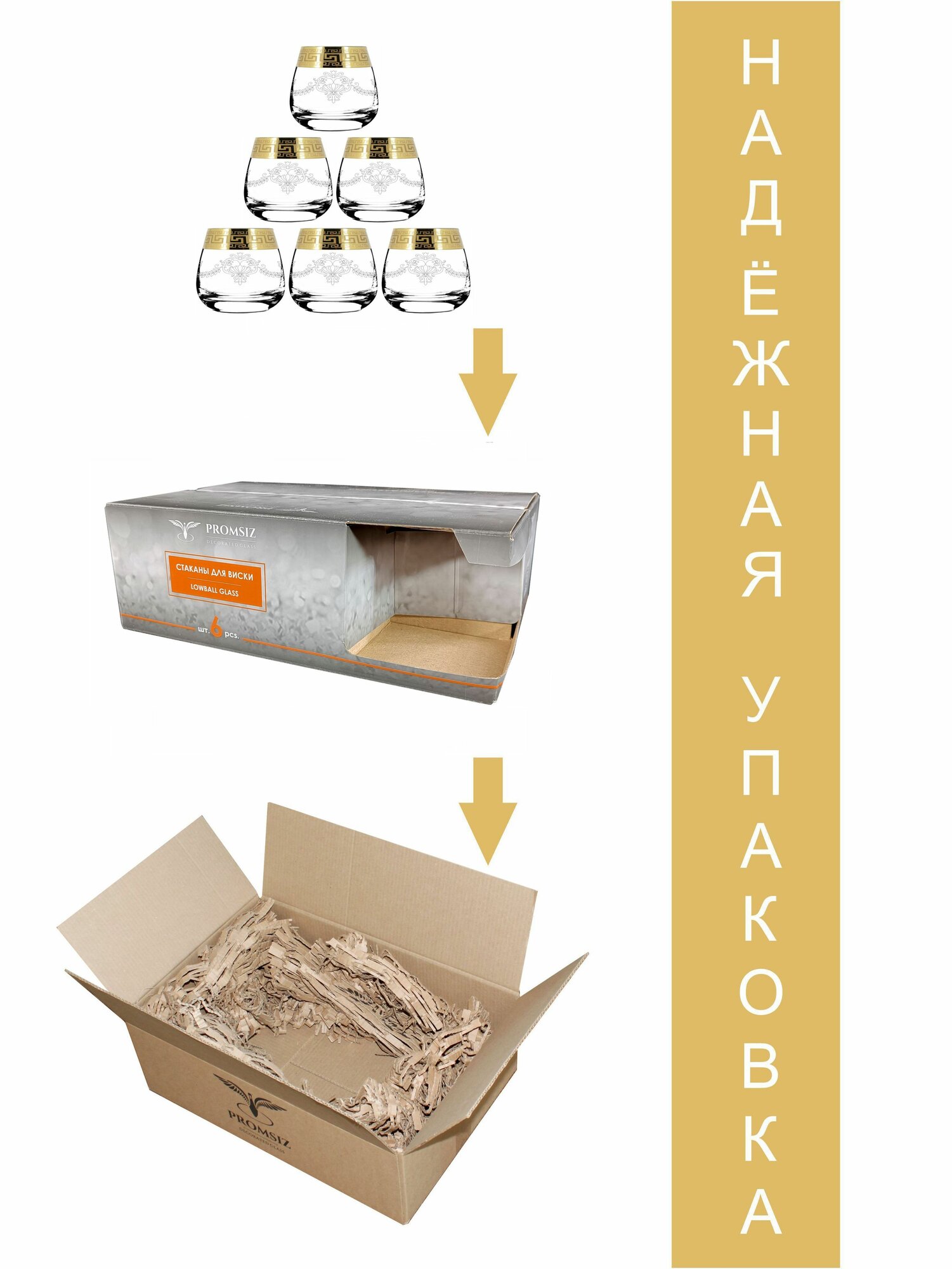 Подарочный набор стаканов для виски с алмазной гравировкой PROMSIZ Ампир 310 мл, 6 шт.