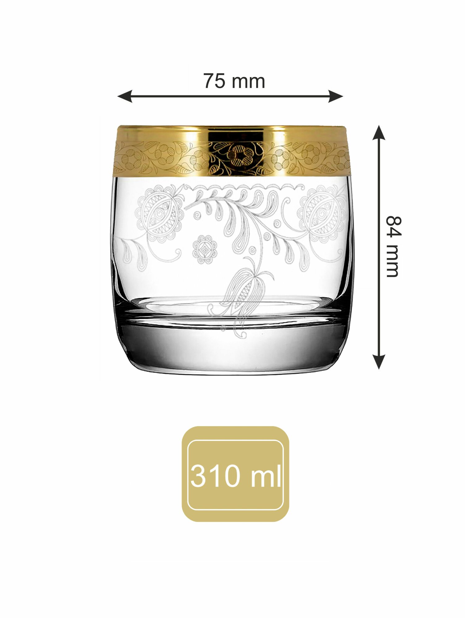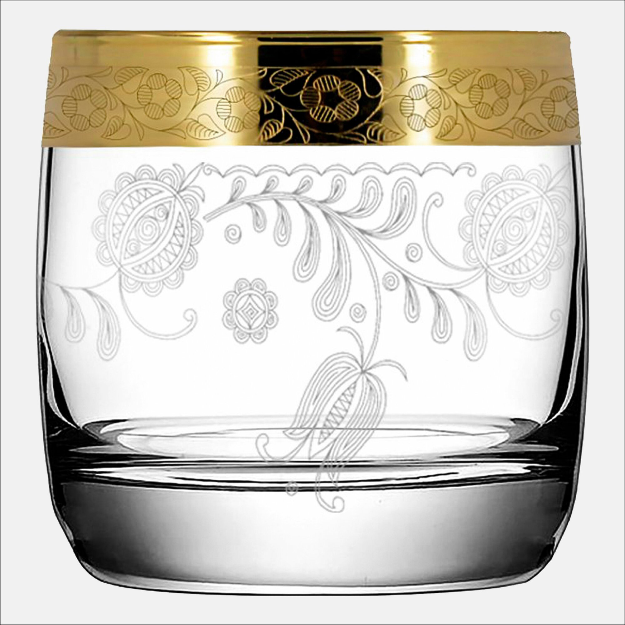 Подарочный набор стаканов для виски с алмазной гравировкой PROMSIZ золотая ветвь, 300 мл, 6 шт.