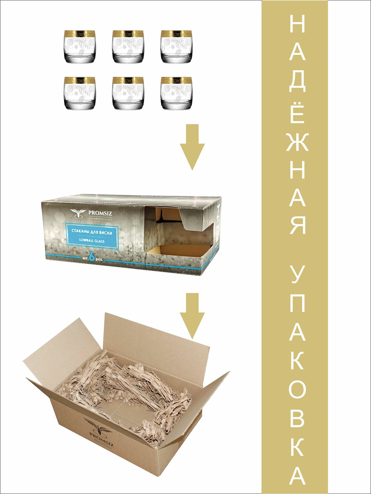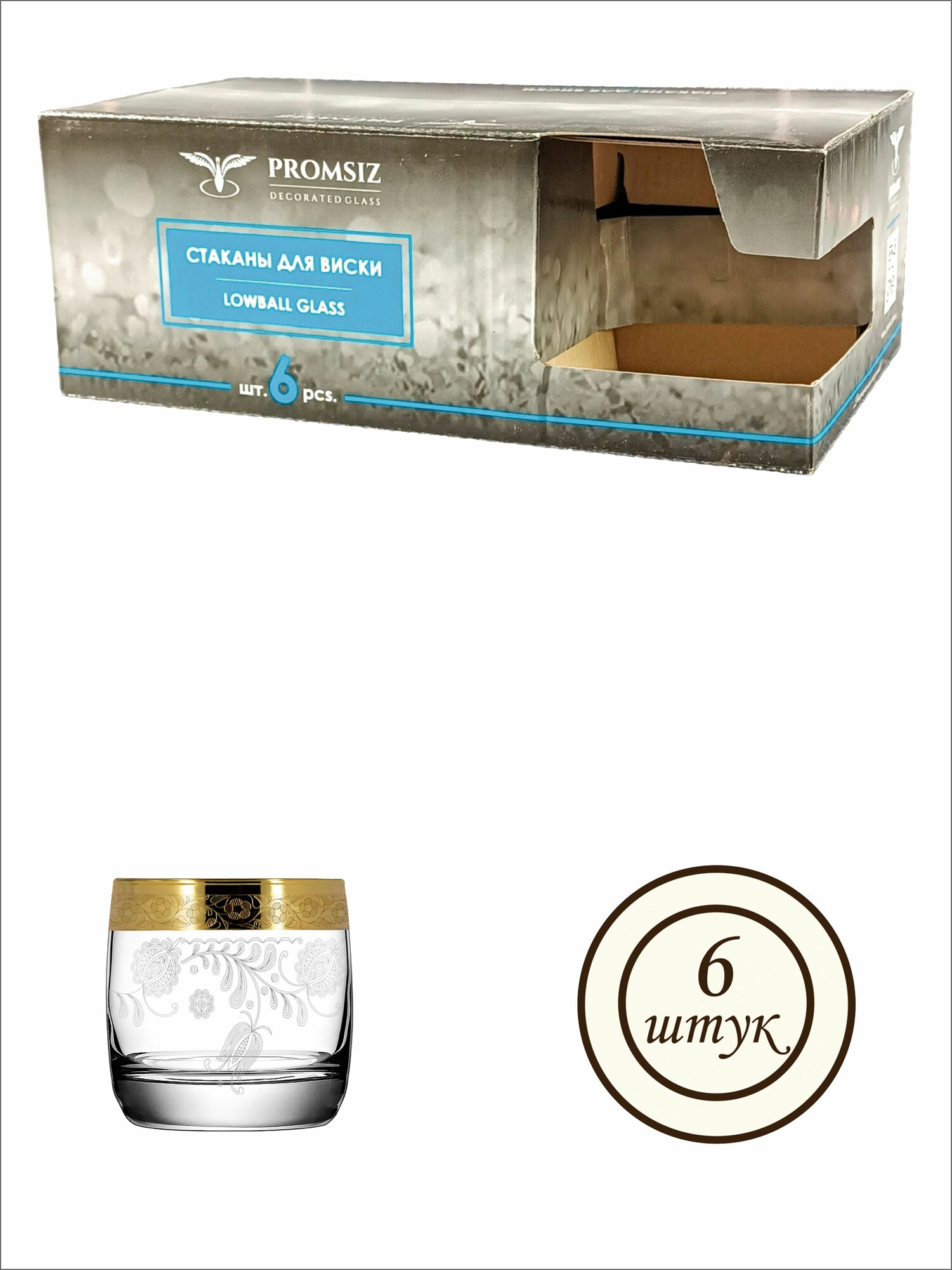 Подарочный набор стаканов для виски с алмазной гравировкой PROMSIZ Ампир 310 мл, 6 шт.