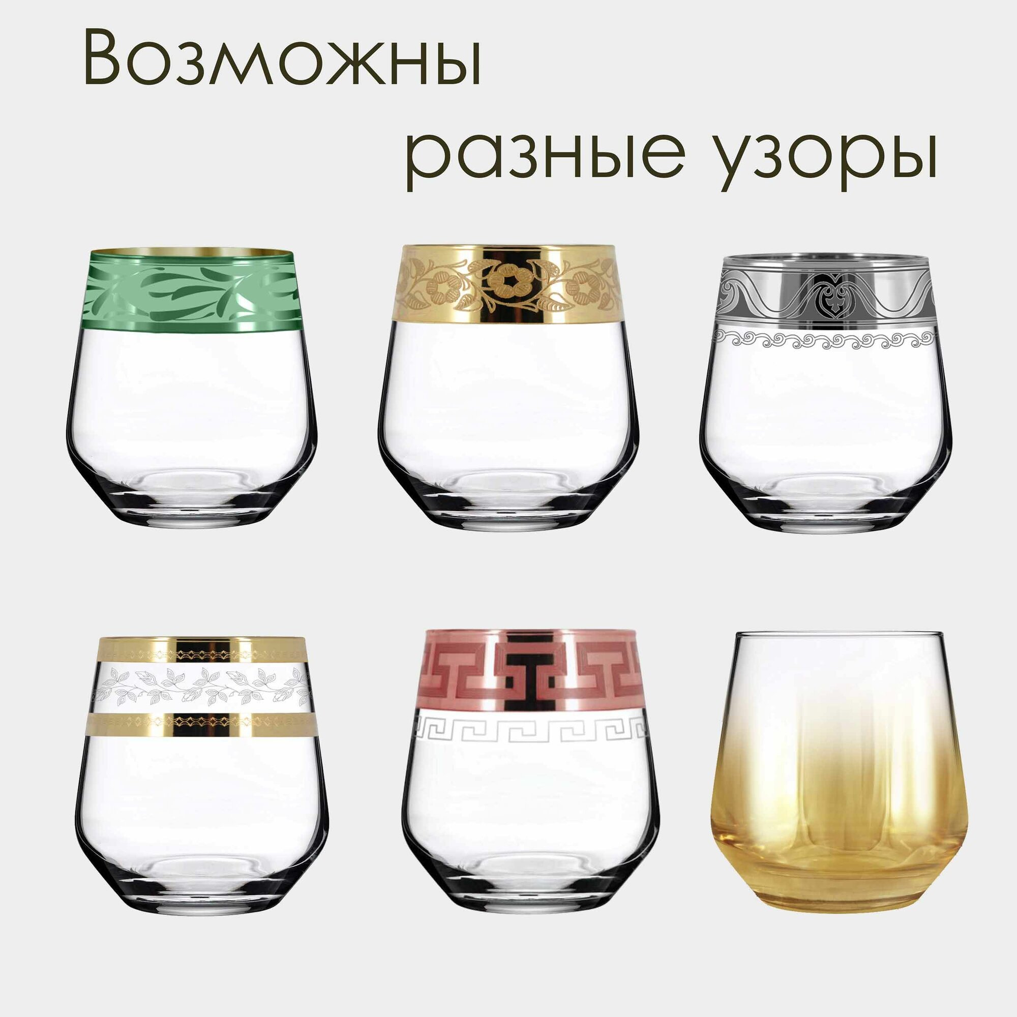 Подарочный набор стаканов с алмазной гравировкой для коктейлей PROMSIZ Настроение 470 мл, 6 шт.