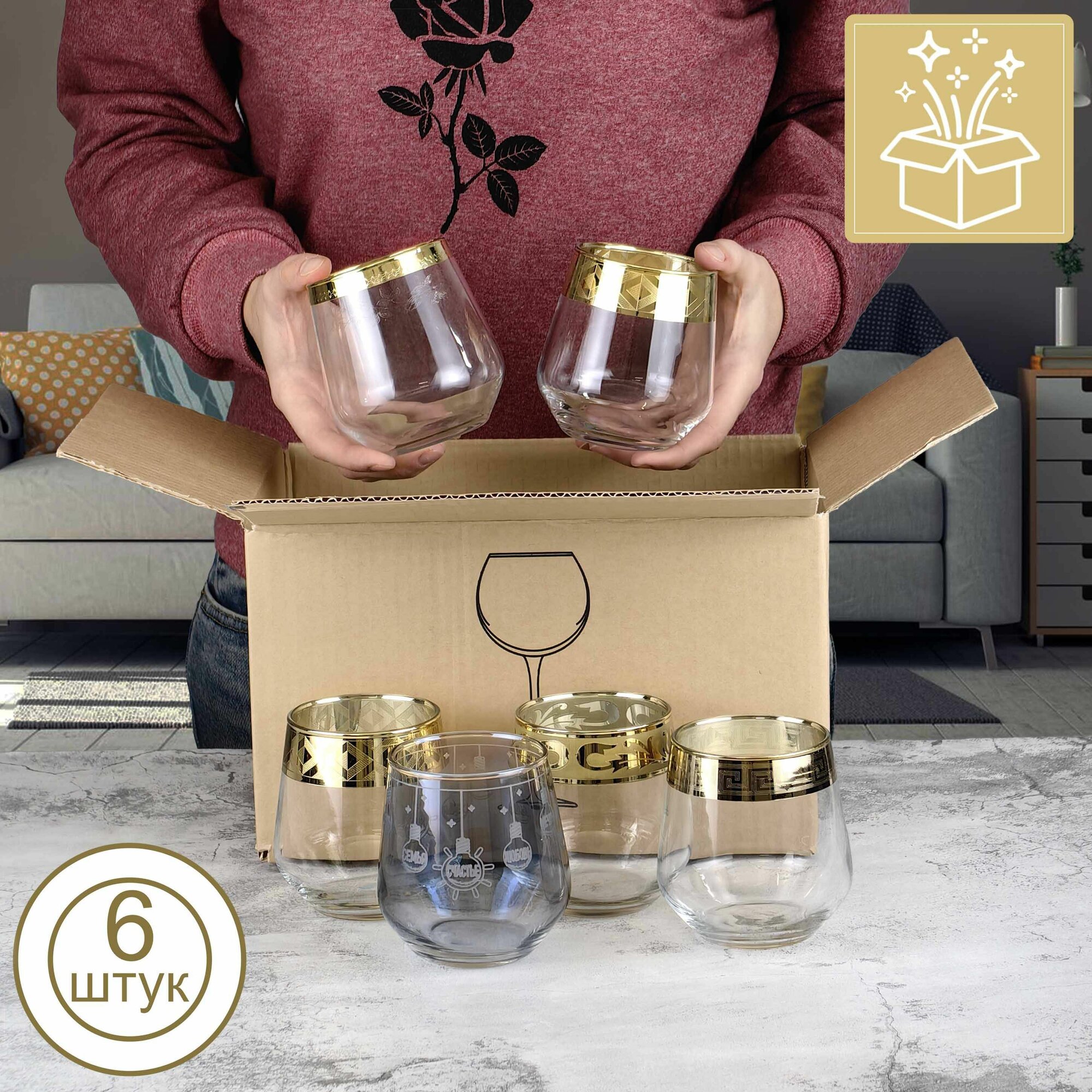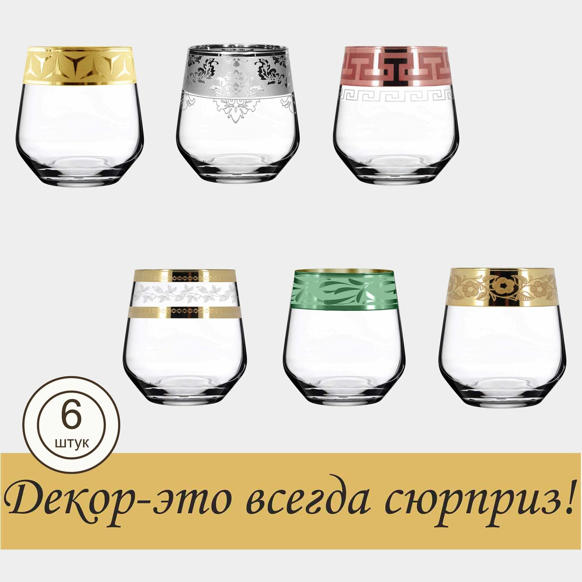 Купить Подарочный набор стаканов для виски с алмазной гравировкой PROMSIZ сюрприз, 390 мл, 6 шт.