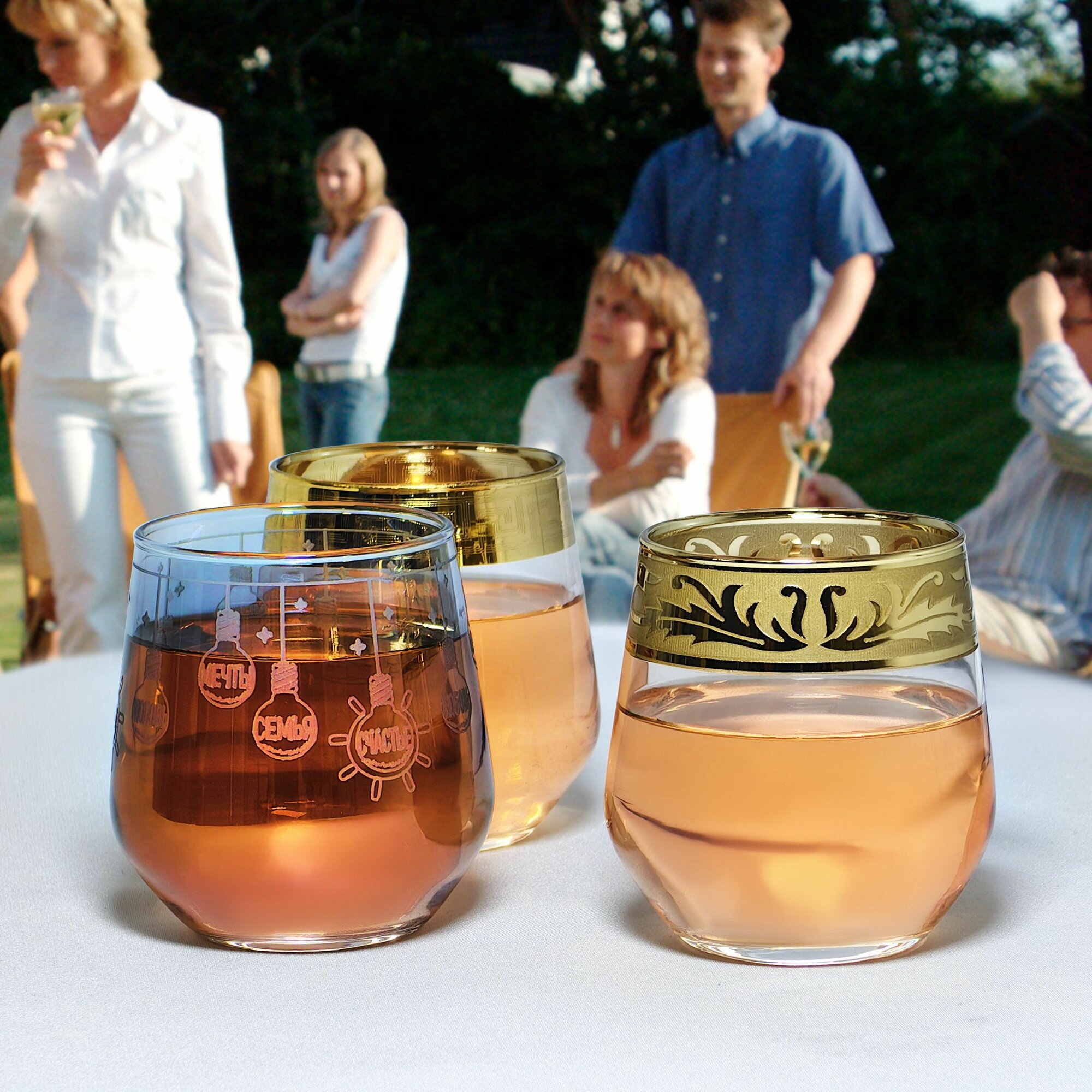 Подарочный набор стаканов для виски с алмазной гравировкой PROMSIZ летний САД 390 мл, 4 шт.